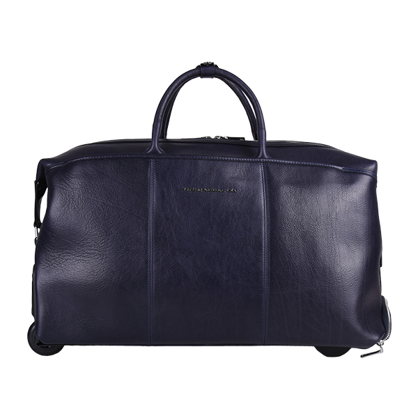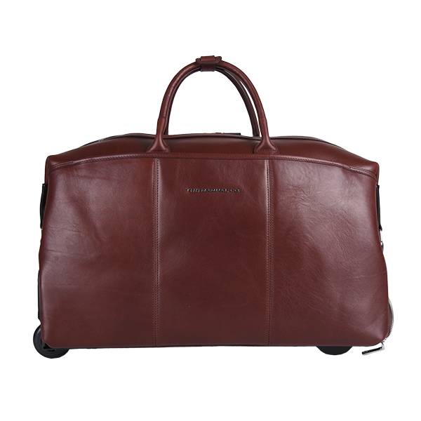 The Manual wheeled travel bag, crafted from natural leather, is the perfect accessory for business trips, short getaways, or extended travels. Its exterior boasts a classic design with a moderately soft structure, a reinforced base, and two silicone wheels for effortless transport. On the sides, there are two external compartments secured with high-quality metal zippers, along with a hidden compartment that houses a retractable aluminum telescopic handle, allowing you to push the bag with ease. Metal snap fasteners on the sides enable the bag to expand. The spacious interior is lined with a durable, easy-to-maintain fabric and includes three internal pockets, one of which is secured with a metal zipper. The bag closes at the top with a premium metal zipper and can be carried in hand using sturdy leather handles, over the shoulder with an adjustable, detachable cotton strap, or pushed using the aluminum trolley handle.