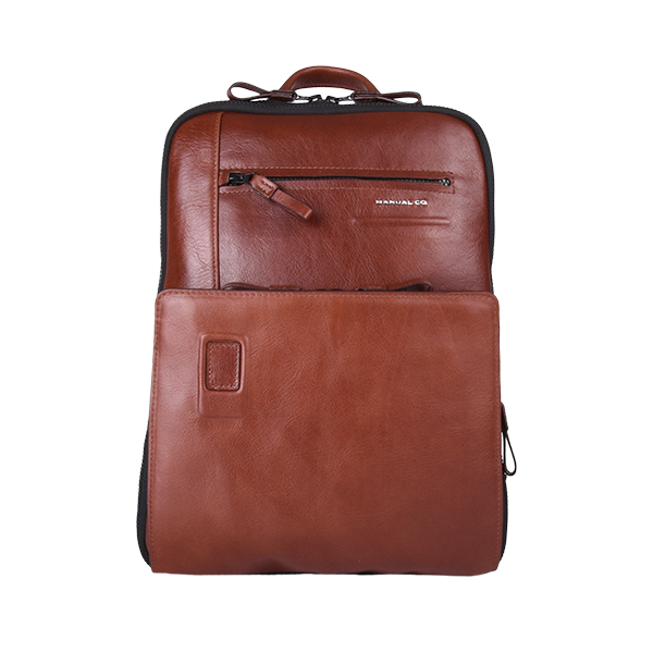 Manual leather backpack designed for everyday use and short trips. The exterior is characterized by a compact form and a modern, minimalist design, while the interior is spacious enough for all your essentials and can be further expanded by opening the high-quality double metal zipper that runs along the entire perimeter of the accessory. The interior features several pockets, one of which is secured with a sturdy metal zipper, and is lined with fine cotton fabric. The backpack also includes two larger exterior pockets with metal zippers, ideal for keeping your phone, wallet, and other valuables. On the back, there is a leather strap that allows you to attach the backpack to your suitcase handle for easier travel.