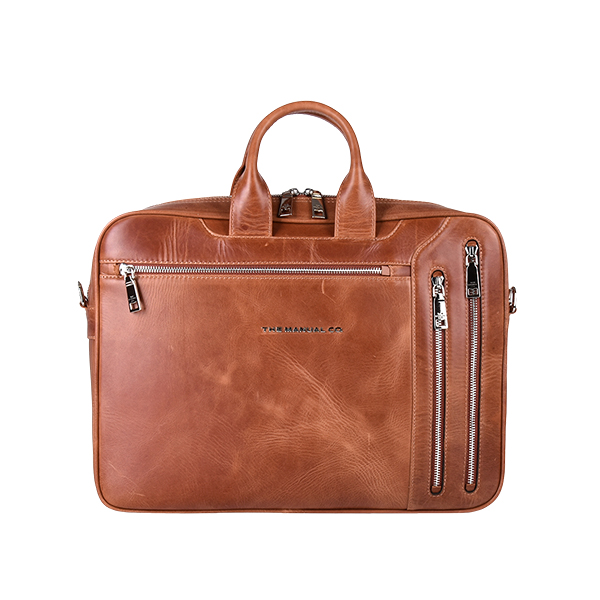 Manual briefcase made of top quality leather features an interesting design and unusual metal hardware. The exterior is defined by regular geometry and attractive hidden pockets with metal zippers – three on the front and one on the back. The interior is spacious enough for your laptop and documents, and it also has two separate pockets for a mobile phone, compartments for pens and one hidden pocket secured by a metal zipper. You can carry the bag either in your hand or over your shoulder thanks to the adjustable cotton strap with leather shoulder strap for a more comfortable carrying.