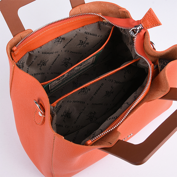 The elegance has become even more authentic with the Manual leather women’s bag. Extraordinary geometry, a fusion of the finest leathers and striking details are giving a character that flirts with timeless classics and current trends. The allure is in the details of the leather handles of straight geometrical shape and its functionality. A perfect organization with as many as three internal partitions and closure with a high-quality nickel-coloured metal zipper ensure safety and functionality. It possesses an additional leather shoulder strap for comfortable all-day wear.
