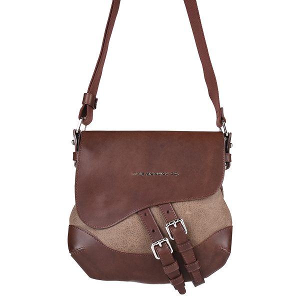 Manual sports women’s bag is a modern accessory with impressive details and an unusual design. The exterior is defined by an irregular and rounded geometric shape and striking details in the form of studs, bag lid, and leather straps used to close accessory. The interior is spacious enough for your essentials, has one hidden pocket, and is lined with fine cotton material. You can carry the bag on your shoulder or over your shoulder thanks to the adjustable cotton strap.