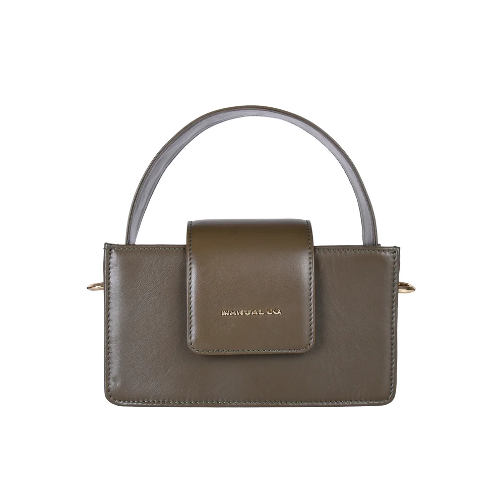 Manual elegant women’s bag is an accessory of urban design with interesting details. The exterior is dominated by a regular, compact geometric form and the highlight motif of the wide leather handle with the brand name embossed on it. The interior is divided into three compartments, the central one is secured by a metal zipper. The bag closes with a hidden magnetic button by folding the wide leather flap. You can carry it in your hand, on your shoulder or crossbody thanks to the narrow adjustable leather strap.