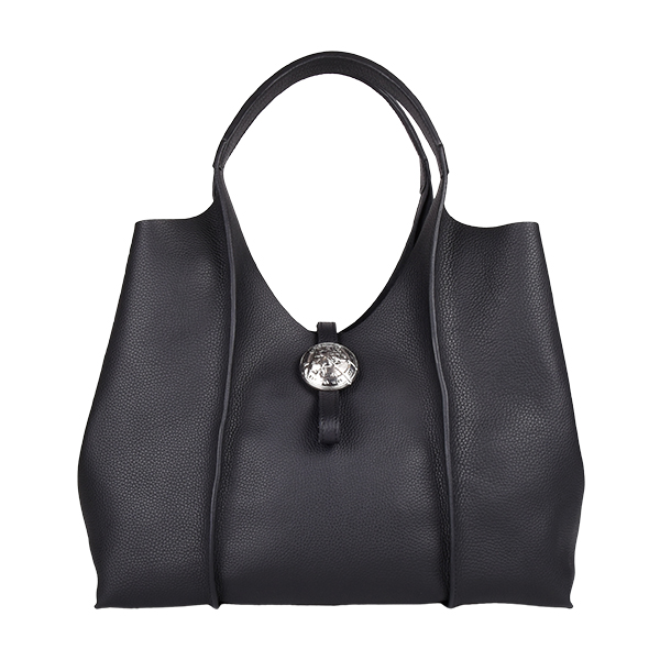 Manual women’s bag with a contemporary, minimalist design and authentic details. Its exterior is defined by clean lines, an unusual shape, a soft form, original quilted details, and a metal hardware piece engraved with Manual’s Horseman, serving as the bag’s closure. The interior is spacious enough for your essentials and includes a separate leather pouch with a metal zipper, ideal for keeping your valuables safe. The bag closes at the top with a leather strap featuring Manual’s Horseman hardware and can be carried on the shoulder thanks to its leather handle.