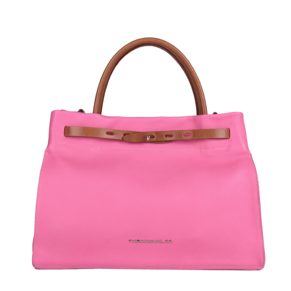 Manual medium size bag will never burden you, it will provide you with a sizable interior for all your necessary items, keeping you comfortably on the go. Featuring two leather straps at the top, while closing in the middle with a small elegant nickel buckle.
