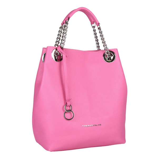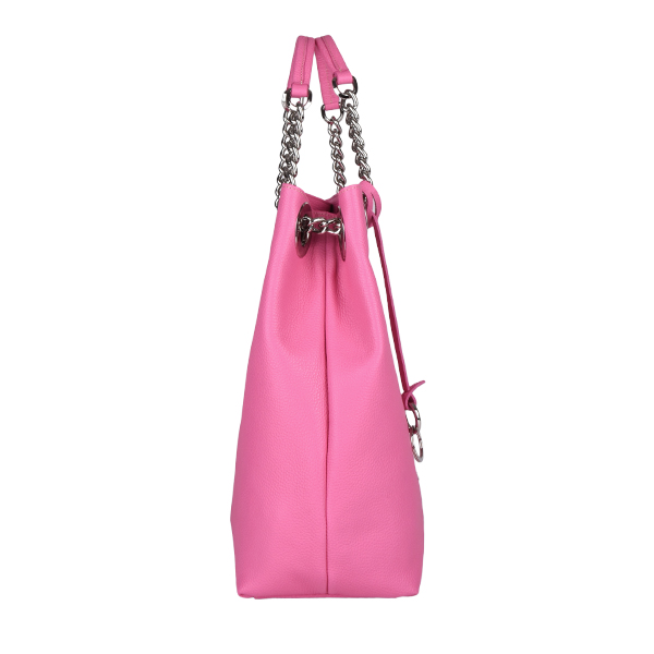 Manual elegant leather bag is so simple and sophisticated but at the same time extremely functional with a sizable interior where you can store even more than you need. Striking graciousness reflects from solid handles attached to the bag’s body with silver-toned metal chains. Elegant bag as a must-have item for every woman, any occasion.