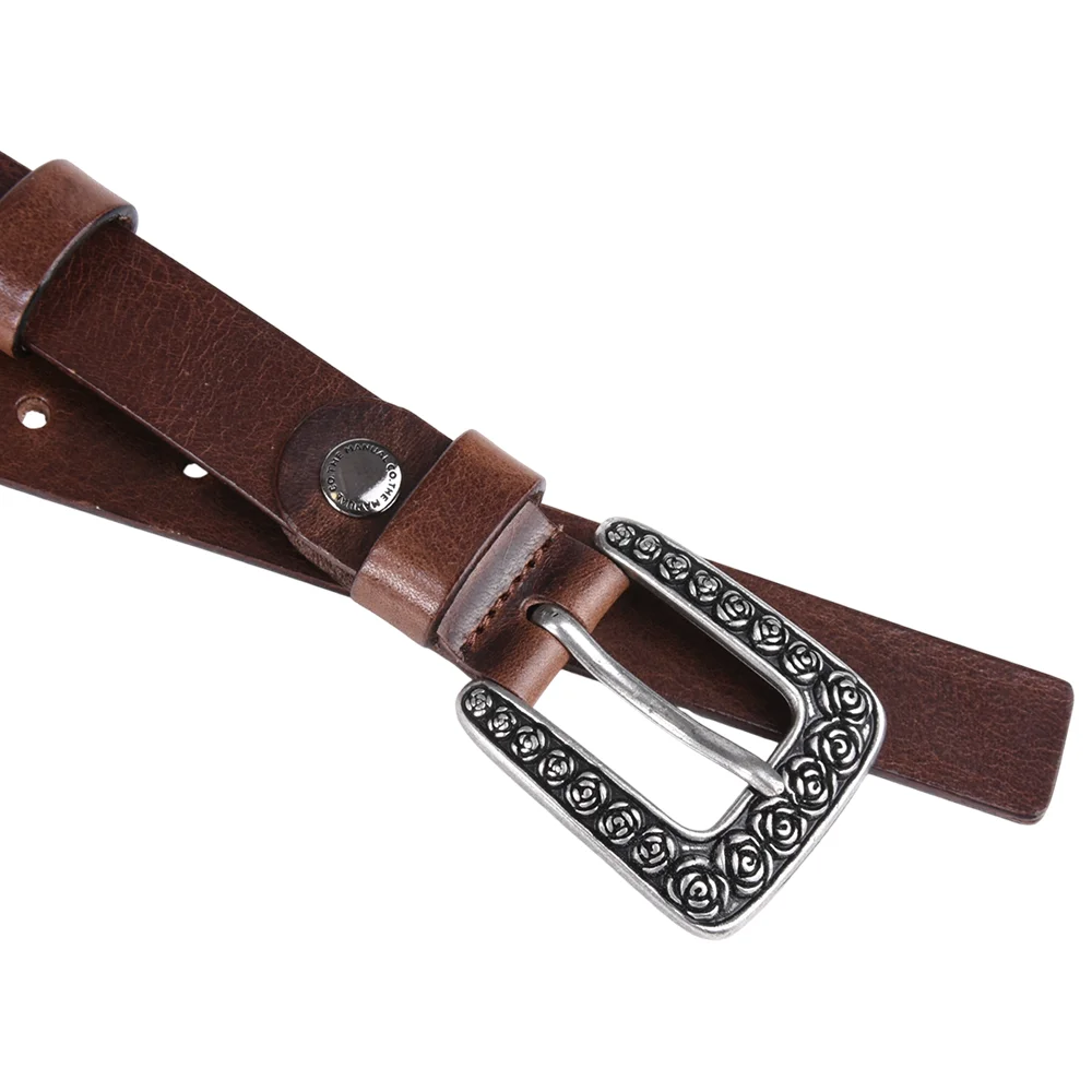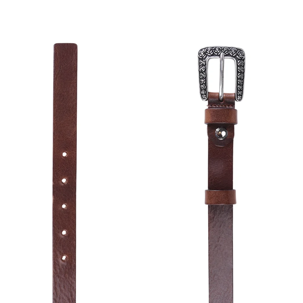 The elegant women’s natural leather belt is completed with an interesting buckle detail. Wear it this season with long dresses and a light wardrobe to create the perfect balance.