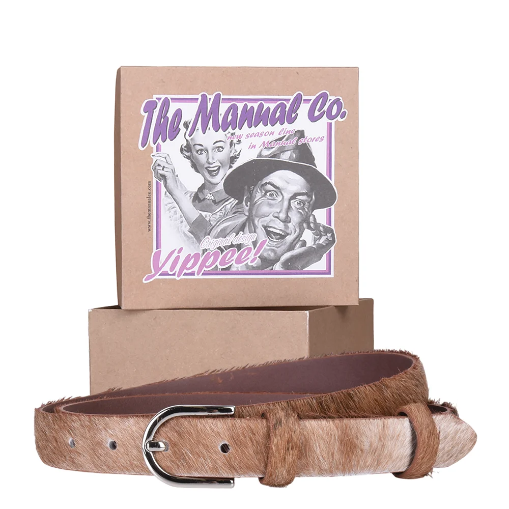 This elegant hair-on-hide belt is the perfect accessory to add texture and luxury to your everyday style. Crafted from high-quality natural cowhide, the belt features a beautiful mottled color that varies in shade, making every single piece unique. Inject a dose of natural glamour into your wardrobe with this unique belt. Order yours today and elevate your style!