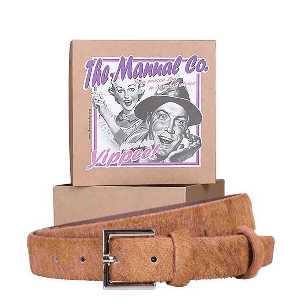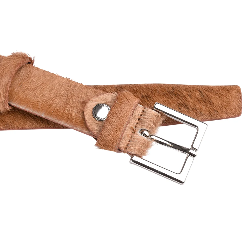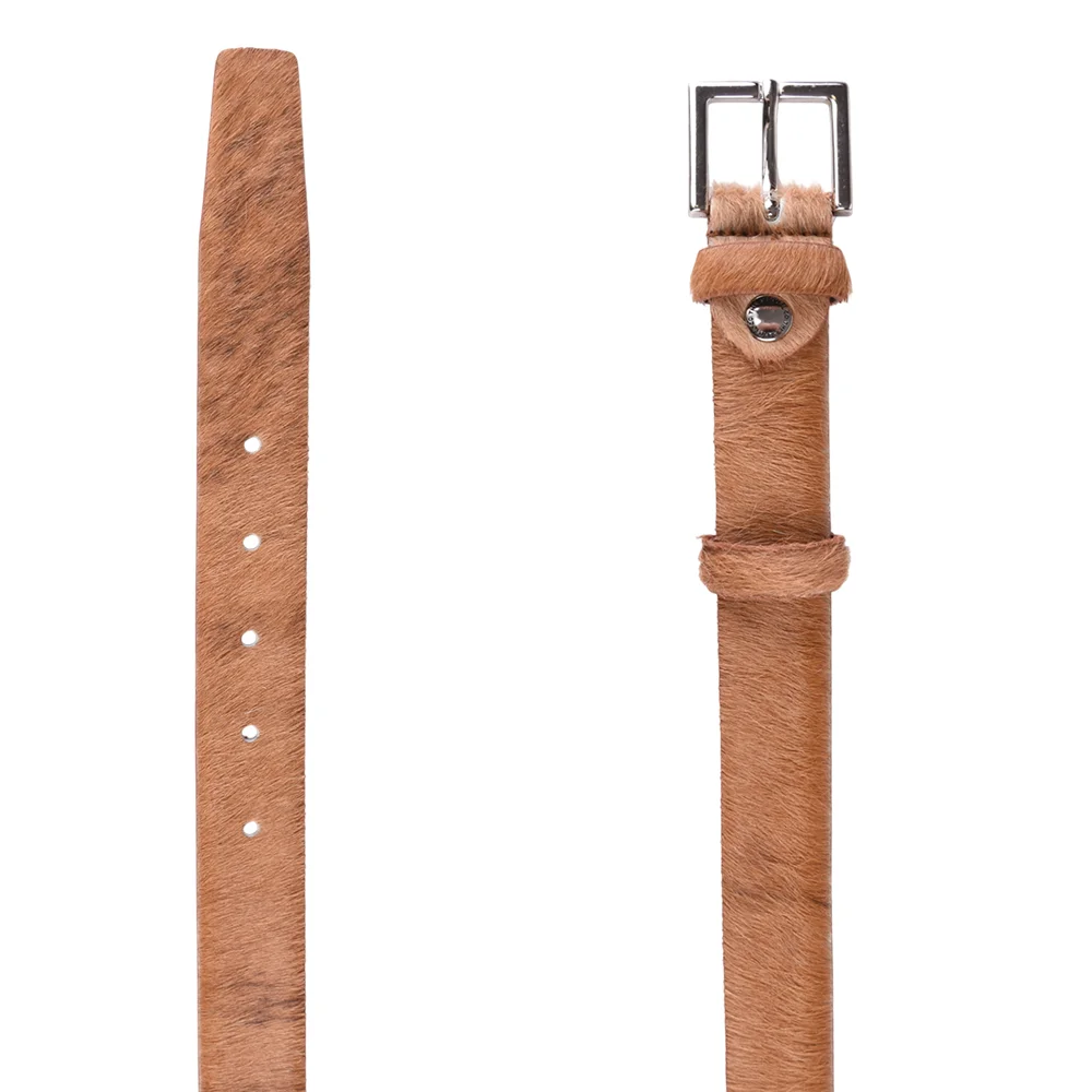 This elegant hair-on-hide belt is the perfect accessory to add texture and luxury to your everyday style. Crafted from high-quality natural cowhide, the belt features a beautiful mottled color that varies in shade, making every single piece unique. Inject a dose of natural glamour into your wardrobe with this unique belt. Order yours today and elevate your style!