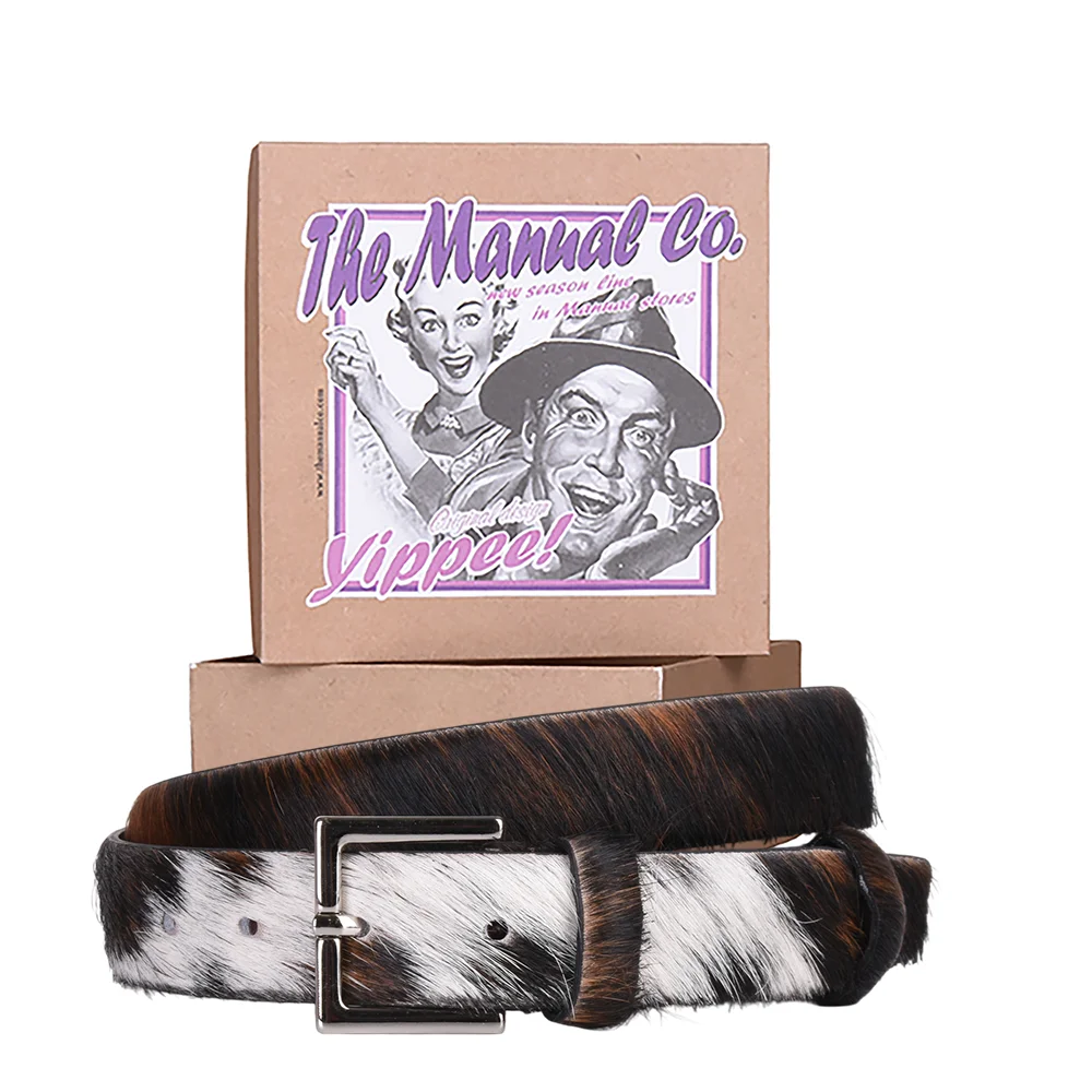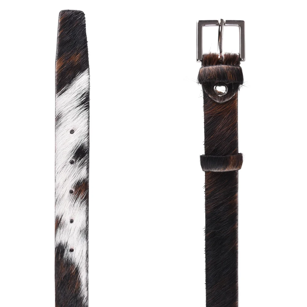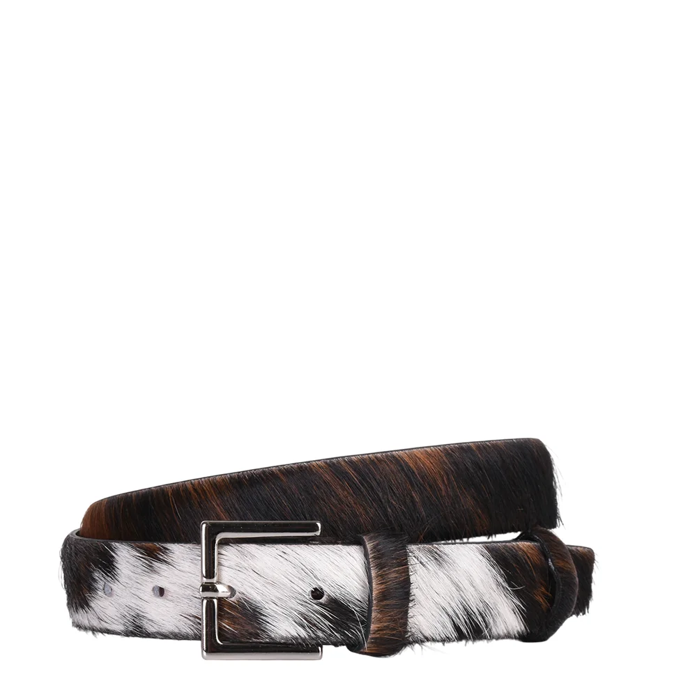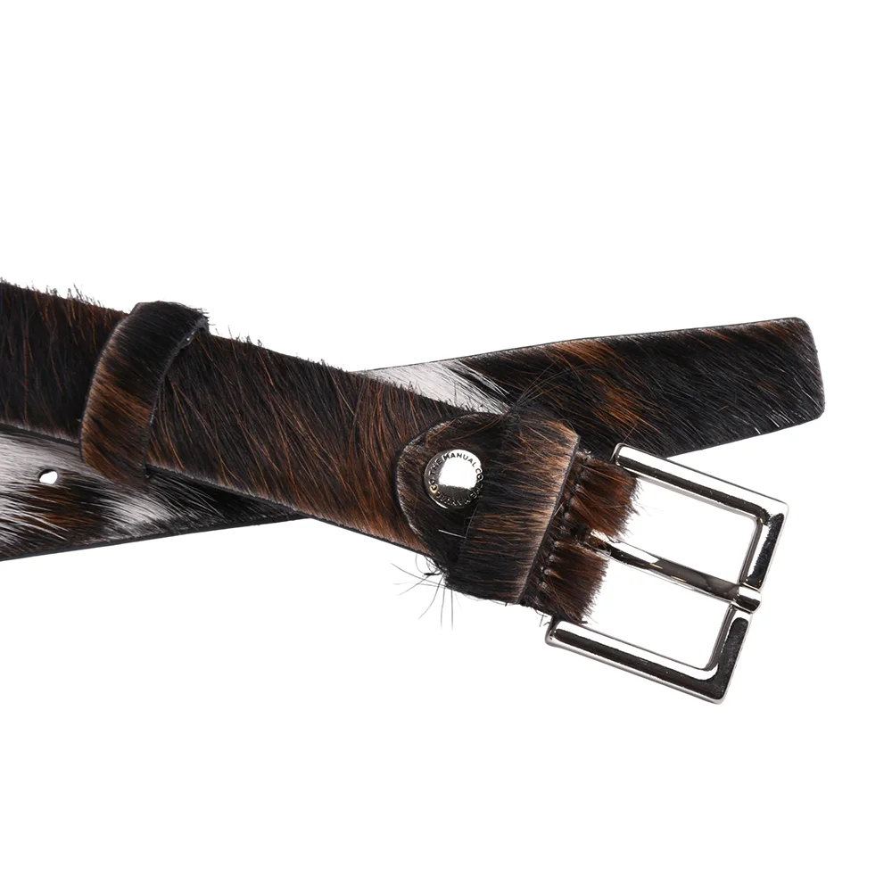 This elegant hair-on-hide belt is the perfect accessory to add texture and luxury to your everyday style. Crafted from high-quality natural cowhide, the belt features a beautiful mottled color that varies in shade, making every single piece unique. Inject a dose of natural glamour into your wardrobe with this unique belt. Order yours today and elevate your style!