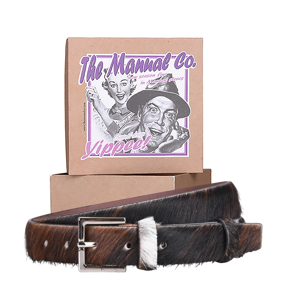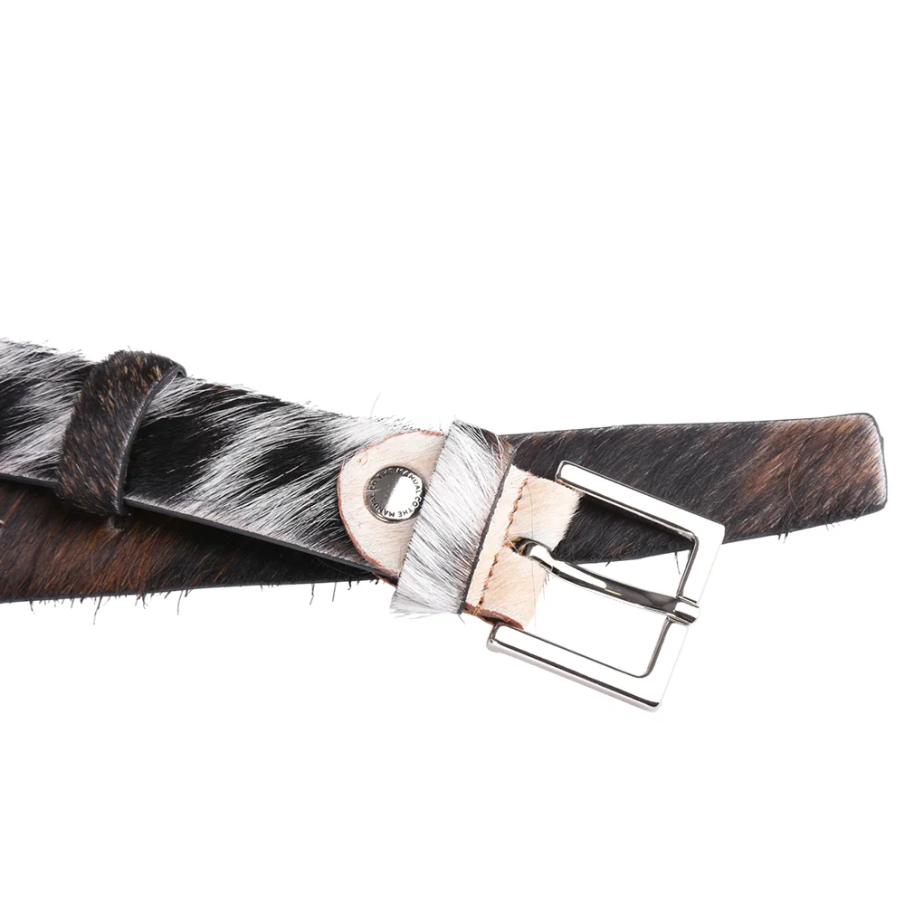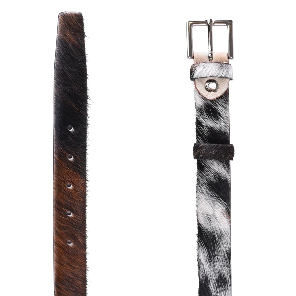 This elegant hair-on-hide belt is the perfect accessory to add texture and luxury to your everyday style. Crafted from high-quality natural cowhide, the belt features a beautiful mottled color that varies in shade, making every single piece unique. Inject a dose of natural glamour into your wardrobe with this unique belt. Order yours today and elevate your style!