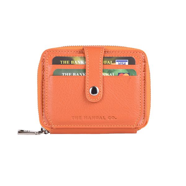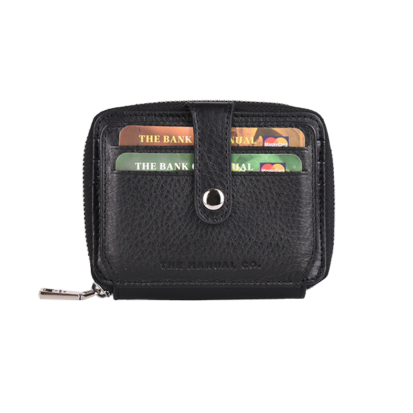 Manual leather card case is an accessory that does not take up much space and has exceptional functionality and organization. The reduced geometric design is complemented by numerous compartments and pockets: 5 compartments for credit cards and one transparent photo compartment in the front, 6 credit card compartments in the center, secured with a metal zipper (you can also use it to hold banknotes) and one transparent pocket at the back. The case closes with a metal zipper and a metal fastener on the front.