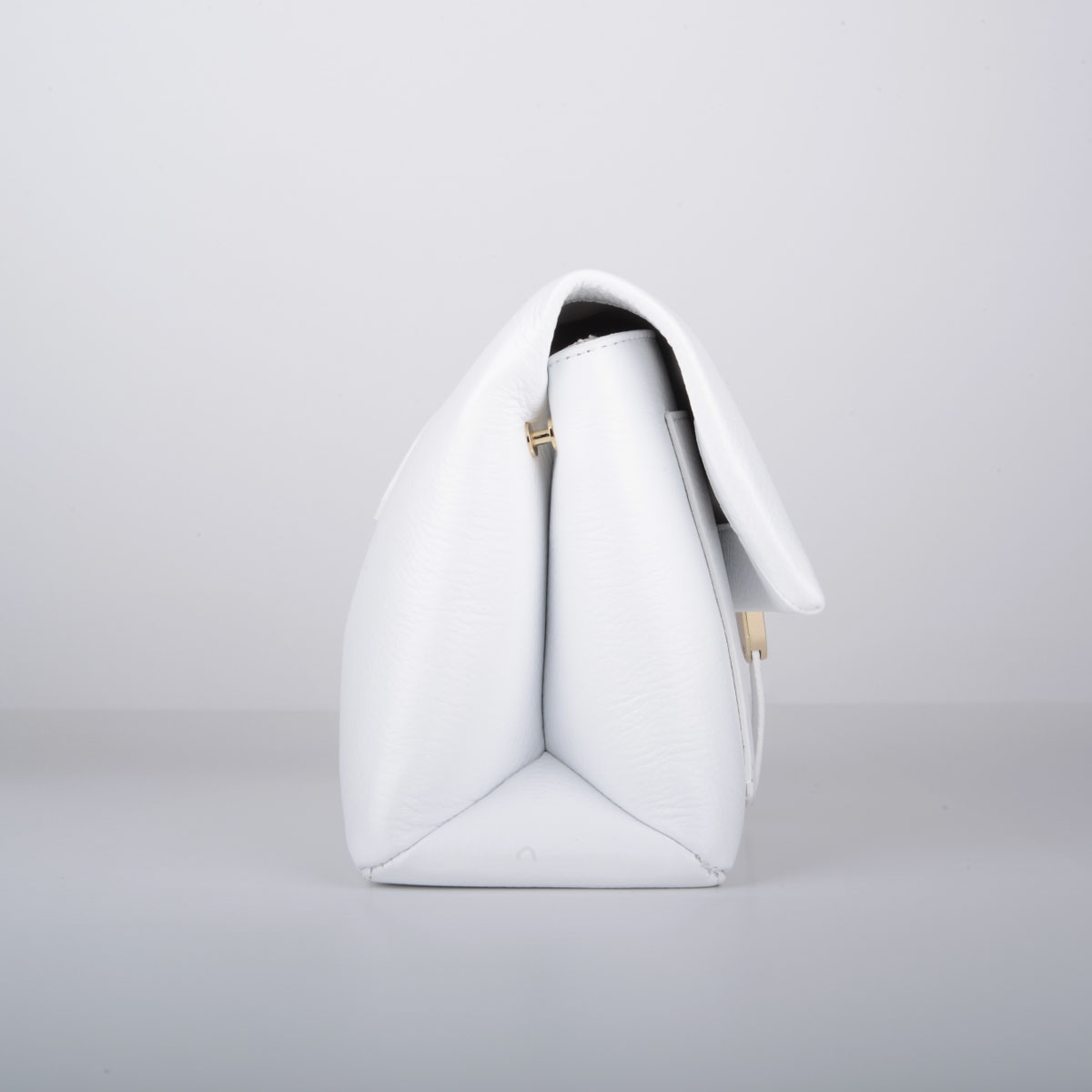 The bag closes with a flap and is additionally secured with a hidden magnetic button.