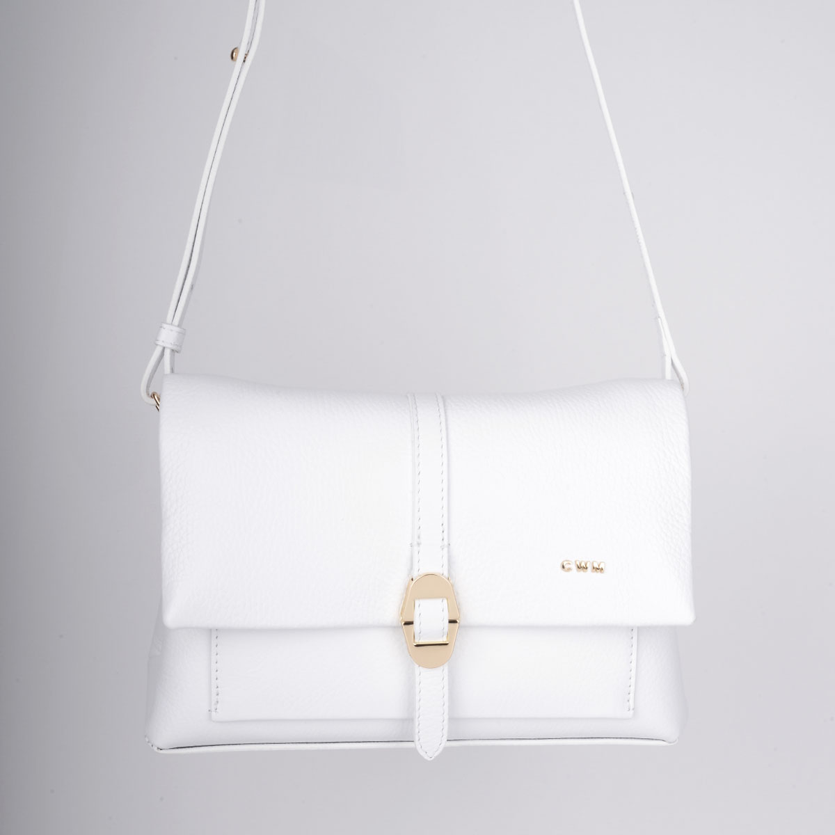 This accessory can be carried by hand, over the shoulder, or crossbody thanks to a narrow, detachable, adjustable leather strap.