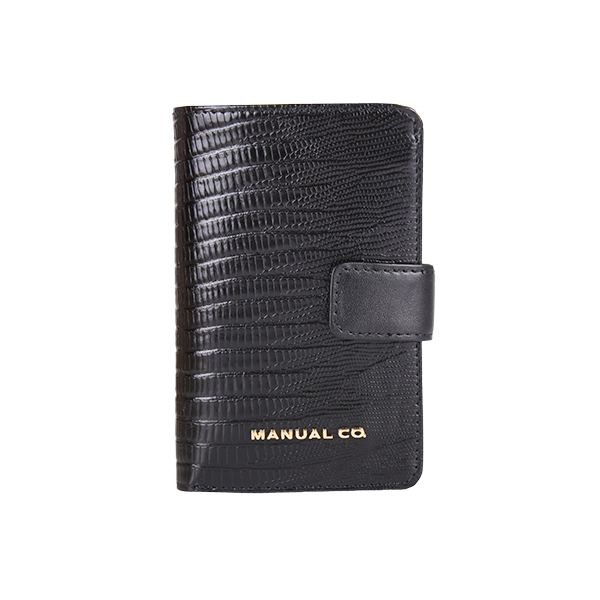 Manual women’s leather wallet is characterized by sophisticated aesthetics and excellent functionality. The exterior is defined by reduced lines and a leather strap with a metal button for closure. The interior contains a section for 10 credit cards or personal documents and a section for paper money and change, secured by a high-quality metal zipper.