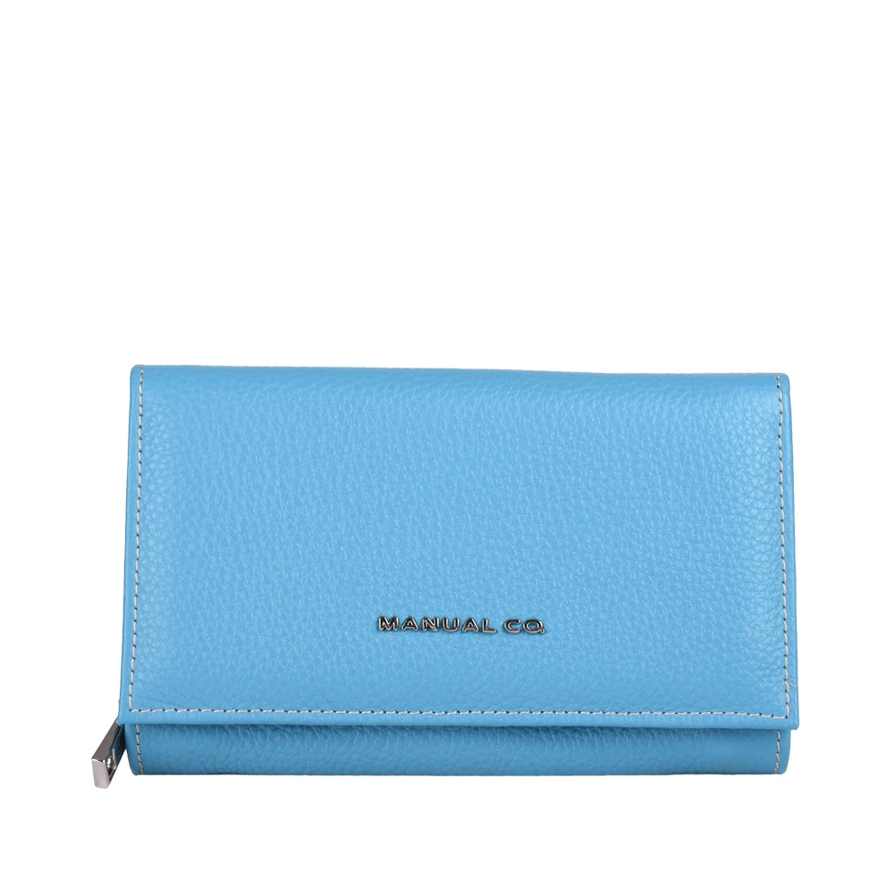 Attractive Manual leather wallet with a button popper flap over closure features a zipper underneath the lid that offers you space for bills, organised in three slips where they don’t get folded. The rest of the wallet presents the coin purse and credit card and ID pockets entirely closed with long, metal zip.