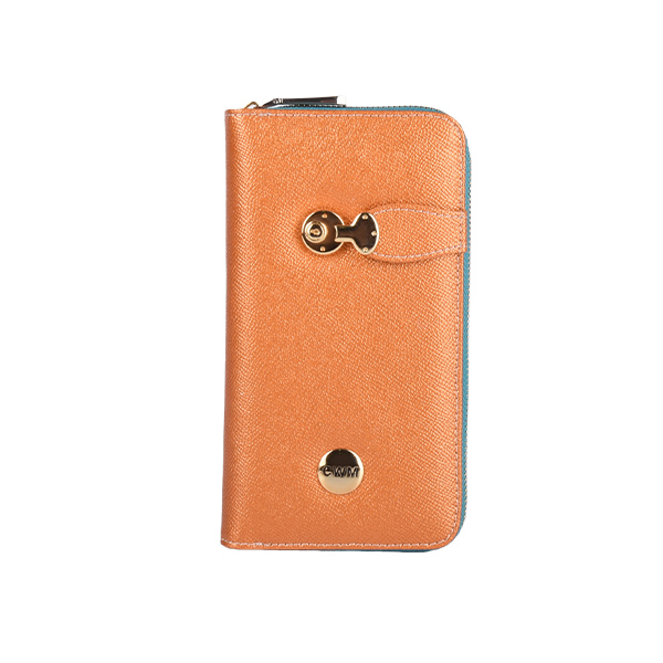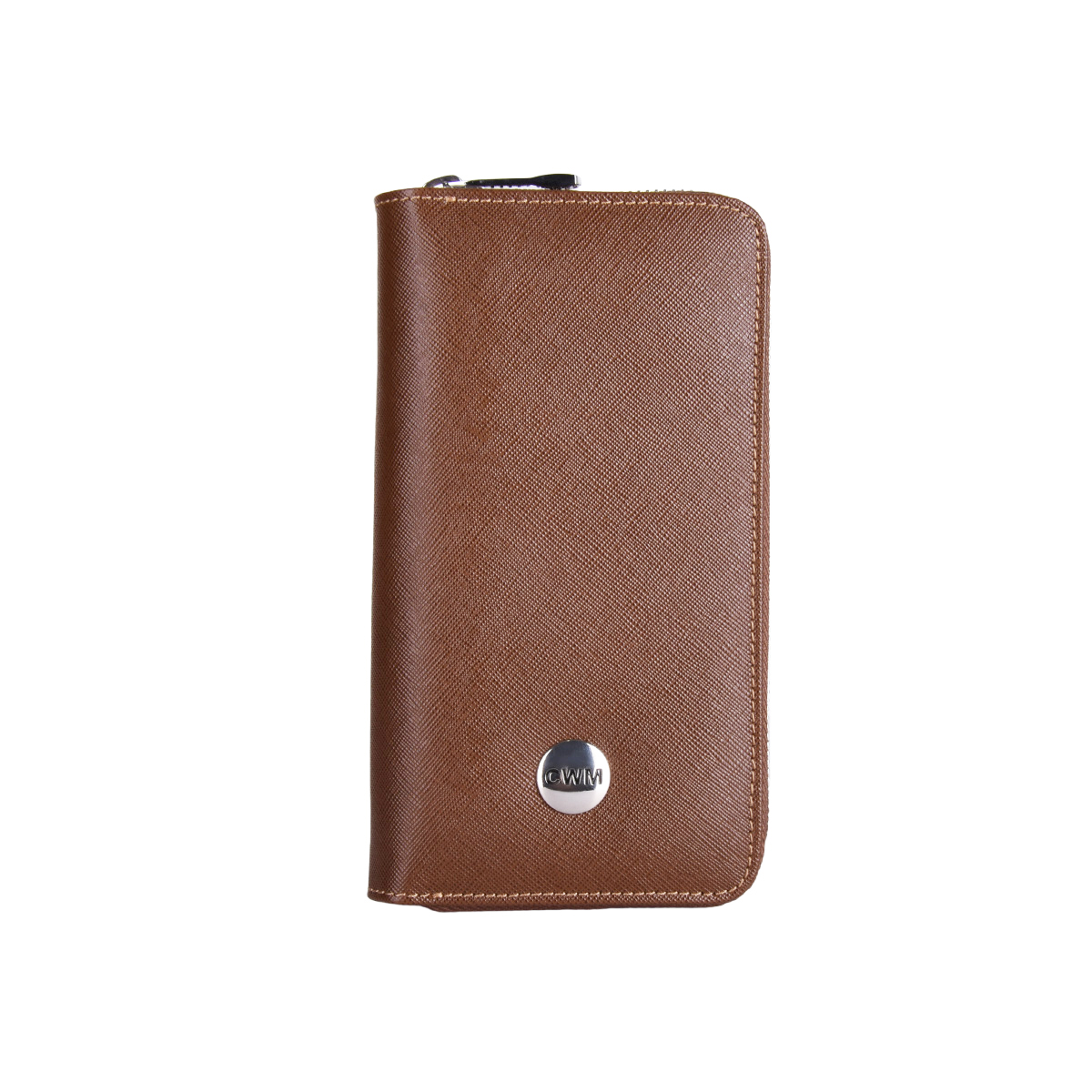 Right under the three side metal zip of this elegant Coffee With Milk leather wallet, the spacious interior uncovers in three compartments and three pockets, while the central one is zipped. The wallet features also credit card slots, suitable for personal documents as well. Being recognisable for this beautiful Coffee With Wallet is obvious, due to its lush metal buckle on the front and vivid colours of genuine leather used in the production.