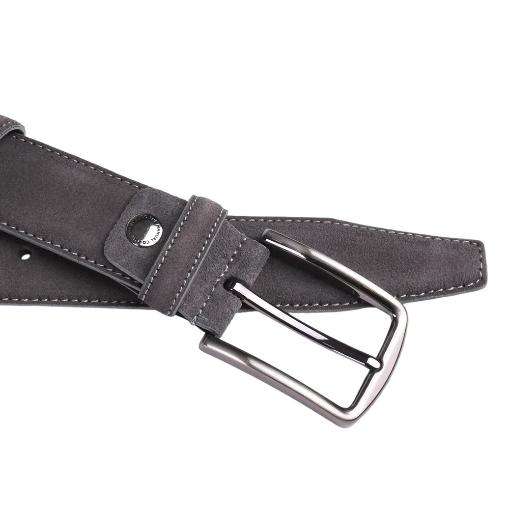 Manual kaiš od brušene kože je aksesoar klasičnog dizajna i pravilne geometrijske forme. Zahvaljujući kvalitetnoj mat metalnoj kopči može se lako kombinovati uz neformalan i formalan stil.