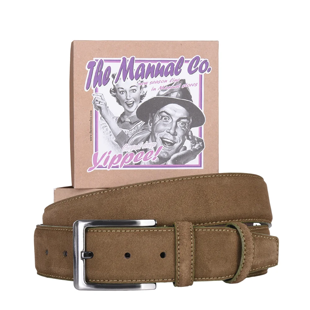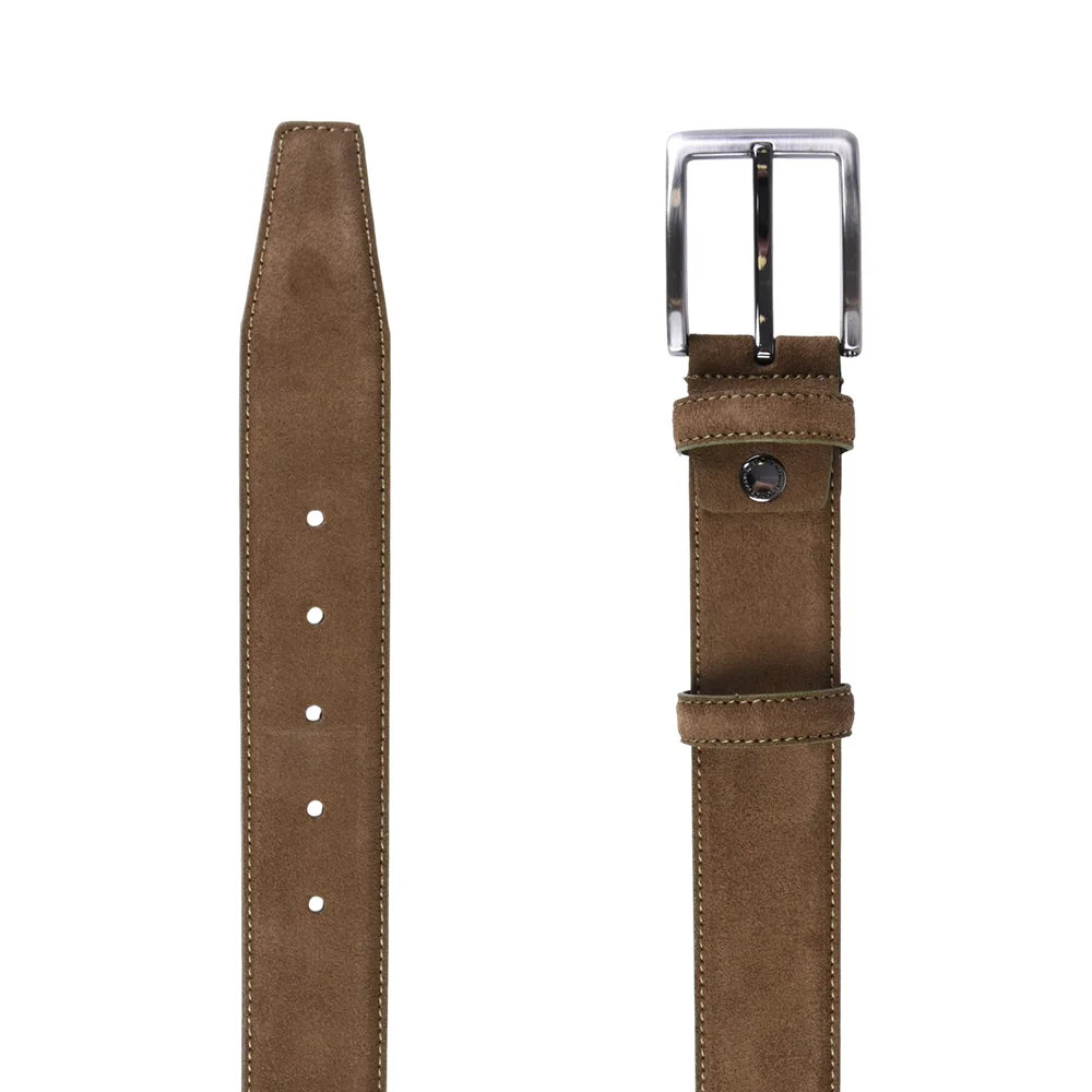 Manual kaiš od brušene kože je aksesoar klasičnog dizajna i pravilne geometrijske forme. Zahvaljujući kvalitetnoj mat metalnoj kopči može se lako kombinovati uz neformalan i formalan stil.