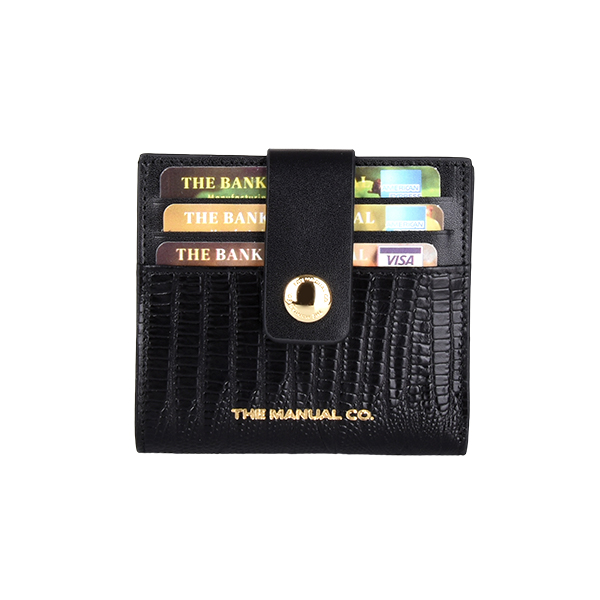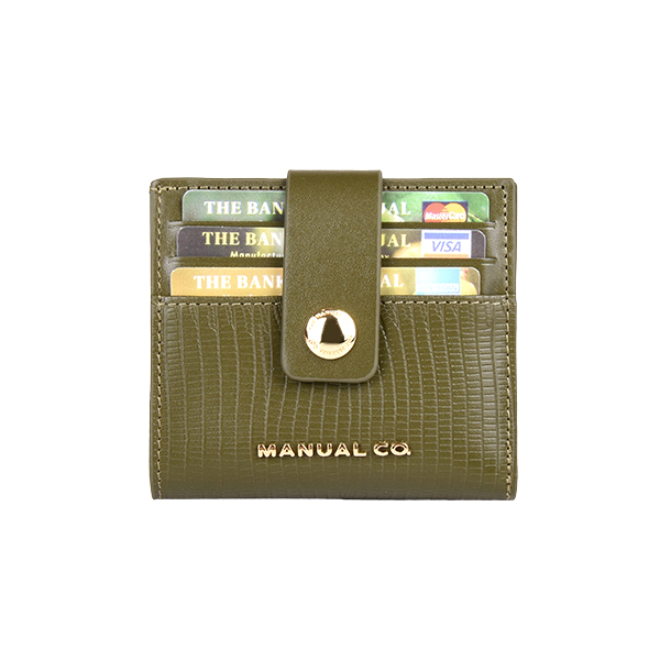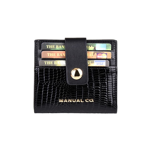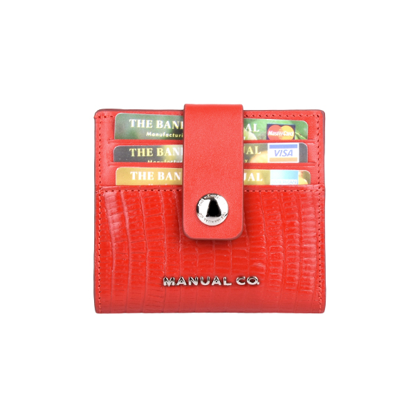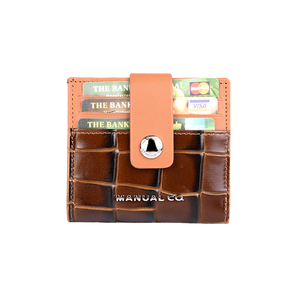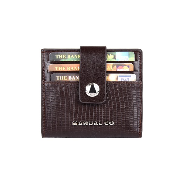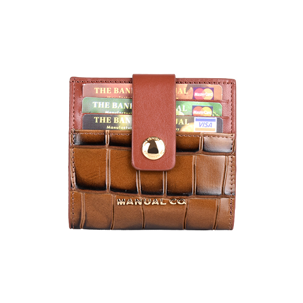 Manual ženski kožni novčanik je dva u jednom aksesoaru. Pored 12 proreza za kreditne kartice ili lična dokumenta, poseduje dodatno i poseban deo za papirne novčanice, tako da na ovaj način dobijate praktično mini novčanik koji staje u svaki džep ili torbicu. Aksesoar se zatvara jednostavno pomoću kožnog remena sa metalnim drikerom.