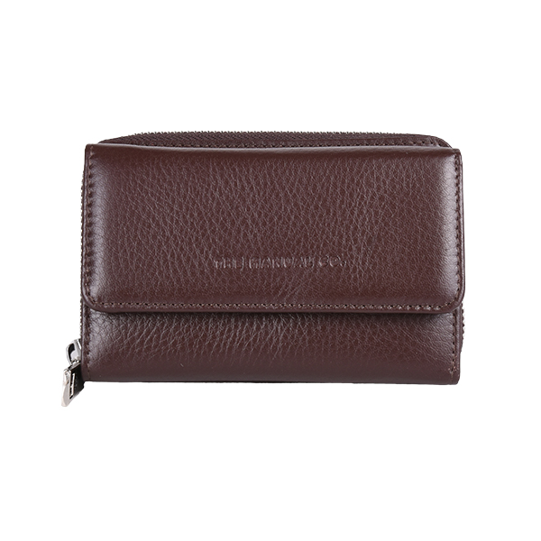 Manual kožni ženski novčanik spaja lepotu i funkcionalnost, a pri tome ne zauzima puno prostora. Sveden dizajn upotpunjen je odličnom funkcionalnošću koja se ogleda u podeljenosti novčanika na odvojeni prednji i zadnji deo. U prednjem delu nalazi se čak 8 pregrada za kreditne kartice ili lična dokumenta, kao i dva skrivena odeljka za novac ili druge neophodnosti. Zadnji deo otvara se metalnim cibzarom, i u njega možete smestiti papirni novac u čak tri pregrade, sitninu u pregradu obezbeđenu cibzarom i dodatno još tri platne kartice u posebnim pregradama. Novčanik se zatvara metalnim drikerom i cibzarom.