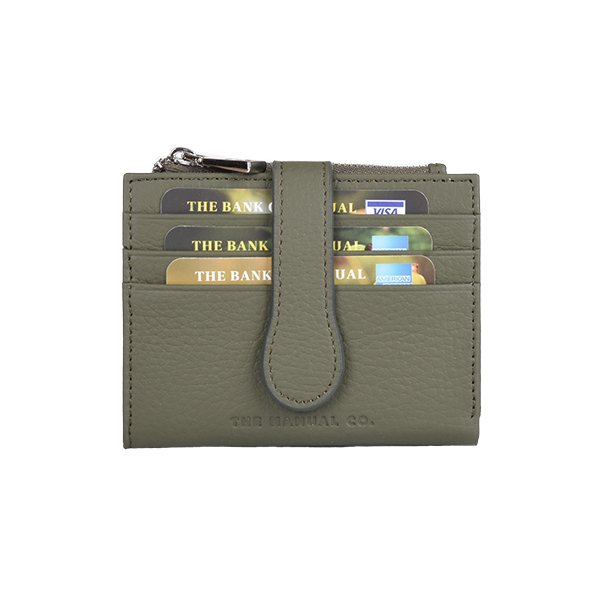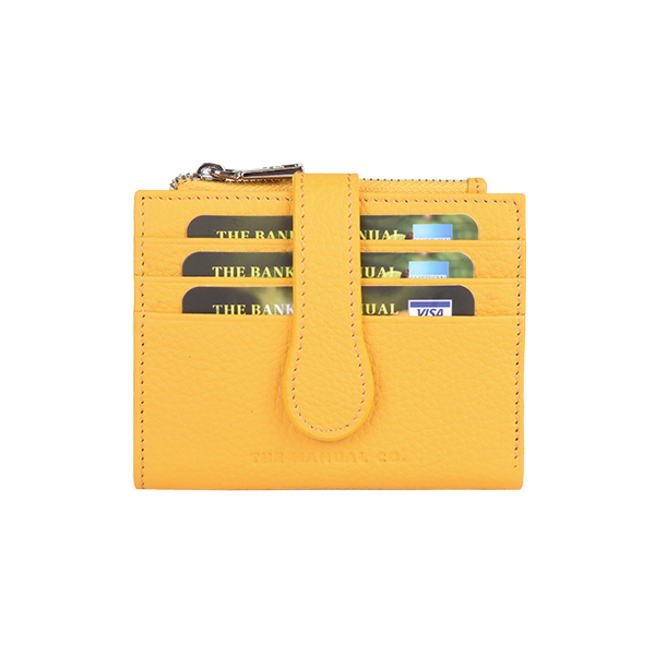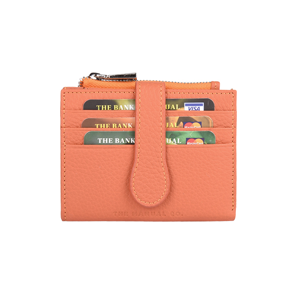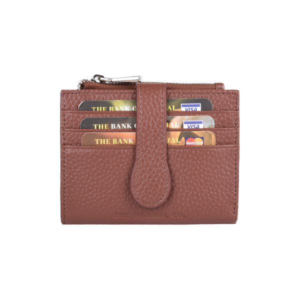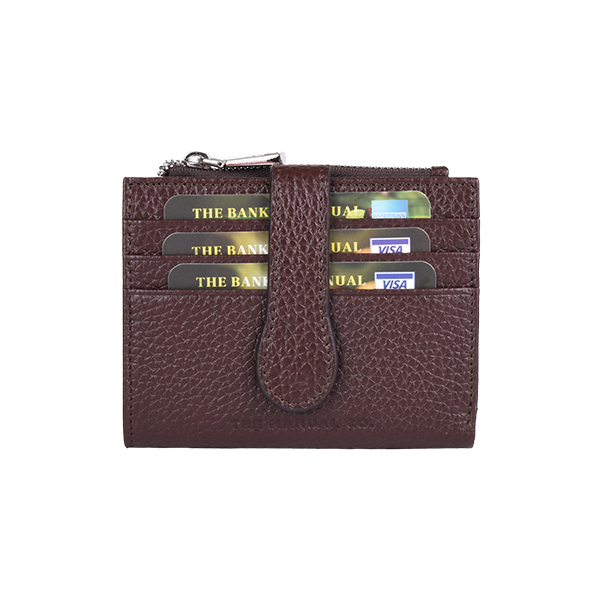 Manual kožni novčanik sa dvostrukim preklapanjem, manjih dimenzija i pravilne geometrije. Spoljašnjost je definisana jednostavnim linijama i minimalističkim dizajnom. Unutrašnjost je odlično organizovana u čak 9 pregrada za kreditne kartice ili lična dokumenta. Dodatno poseduje odeljak za sitninu koji je osiguran kvalitetnim metalnim cibzarom i deo za papirne apoene. Novčanik se zatvara preklapanjem pomoću kožnog remena sa metalnim drikerom.