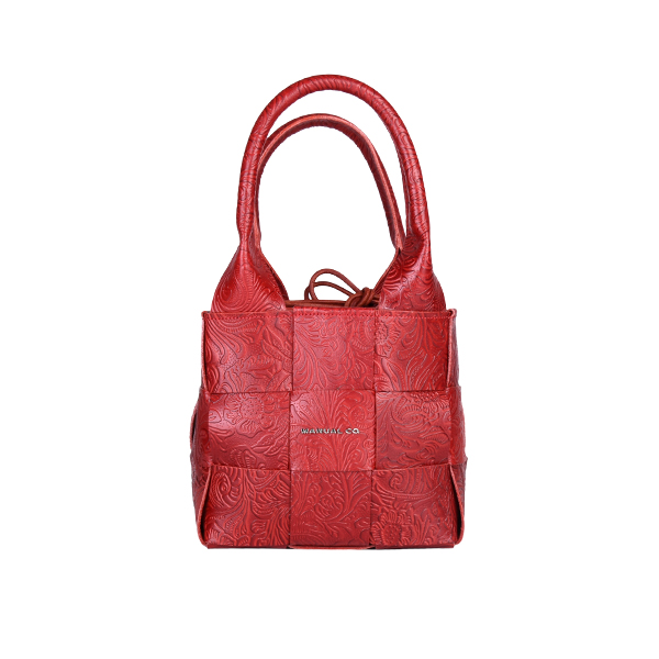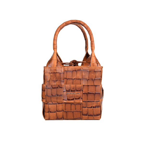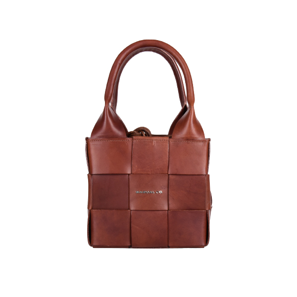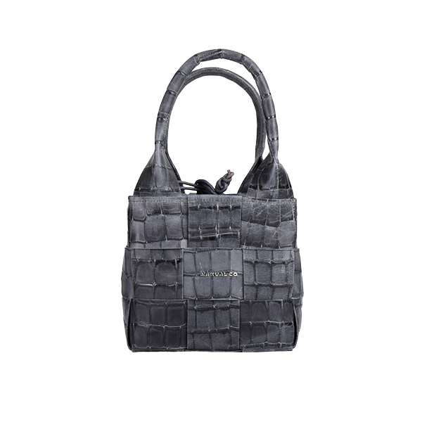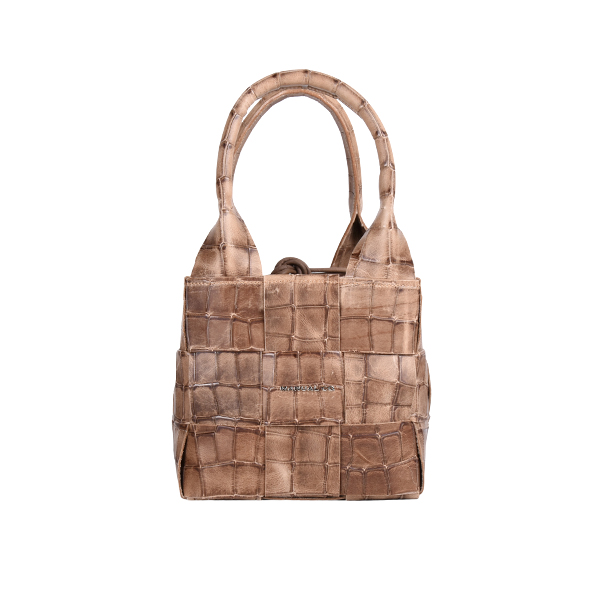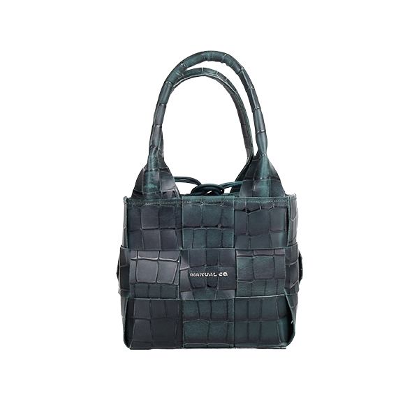 Manual ženska kožna torba je autentičan aksesoar kojim dominira fini ručni rad. Spoljašnost odlikuju kompaktna forma, neobična tekstura od isprepletenih komadića kože i efektne kožne ručke na vrhu. Unutrašnjost je prostrana, postavljena finim pamučnim materijalom. Torbu mozete nositi u ruci ili preko ramena zahvaljujući podesivom, zamenjivom kožnom kaišu. Aksesoar se zatvara potezanjem kožnog učkura na vrhu.