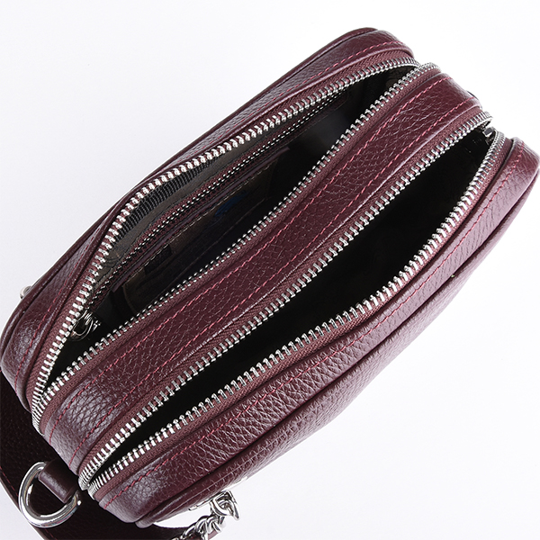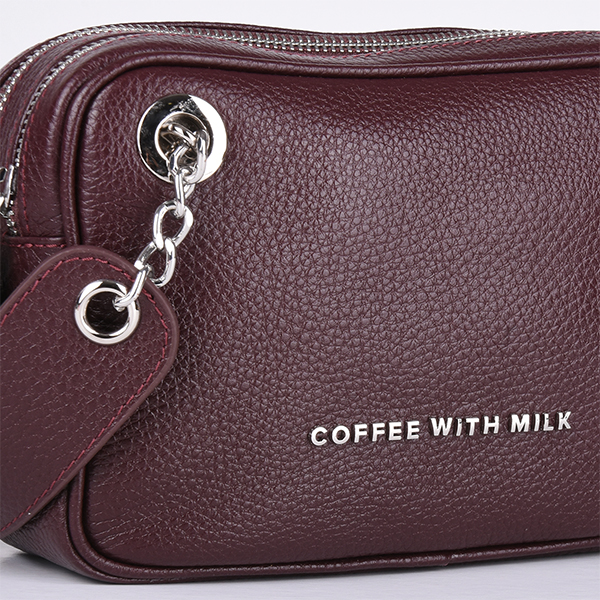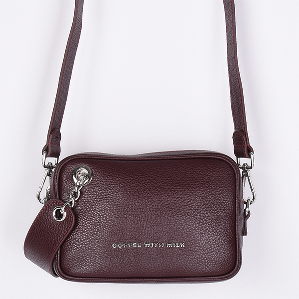 Coffee With Milk torba od kvalitetne goveđe kože savremenog dizajna i odlične funkcionalnosti. Spoljašnošću dominiraju zaobljene linije, kompaktna forma i efektni detalji poput kožne ručke sa metalnim lancem pomoću koje torbu možete nositi oko ručnog zgloba. Unutrašnjost je odlično organizovana u dve pregrade, dodatno obezbeđene sa dva kvalitetna metalna cibzara i postavljena je finim, glatkim materijalom. Poseduje skriveni džep, dodatno obezbeđen kvalitetnim metalnim cibzarom.