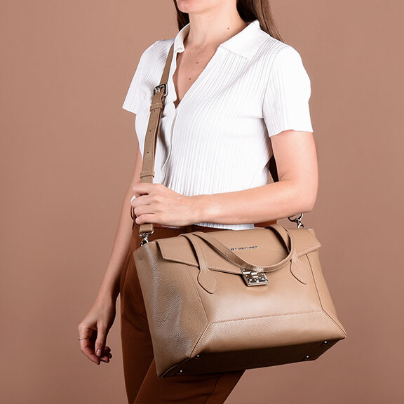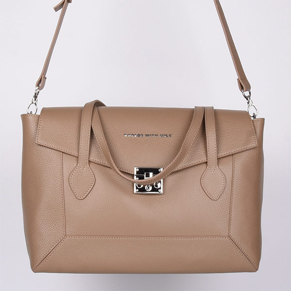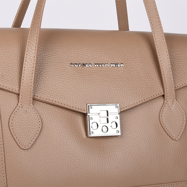 Coffee With Milk torba od kvalitetne goveđe kože elegantnog dizajna i odlične funkcionalnosti. Spoljašnošću dominira pravilna geometrija, kompaktna forma i efektni metalni hardver.