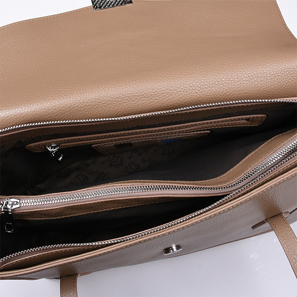 Unutrašnjost je odlično organizovana u čak tri pregrade, dodatno obezbeđene sa kvalitetnim metalnim cibzarom u sredini i postavljena je finim, glatkim materijalom. Poseduje skriveni džep, dodatno obezbeđen kvalitetnim metalnim cibzarom.