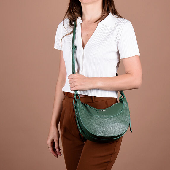 Aksesoar možete nositi na ramenu ili preko ramena zahvaljujući kožnoj podesivoj ručki.
