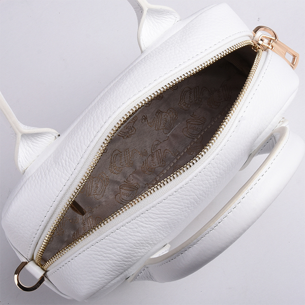 Coffee With Milk torba od kvalitetne goveđe kože klasičnog dizajna i prefinjene elegancije. Spoljašnošću dominira svedena, kompaktna forma i efektni detalji. Unutrašnjost je dovoljno prostrana za Vaše neophodnosti, postavljena je finim, glatkim materijalom i poseduje jedan unutrašnji skriveni džep. Torba se zatvara pri vrhu pomoću kvalitetnog metalnog cibzara. Aksesoar možete nositi na ramenu ili preko ramena zahvaljujući masivnim kožnim ručkama i jednom užem zamenjivom, podesivom kožnom kaišu.