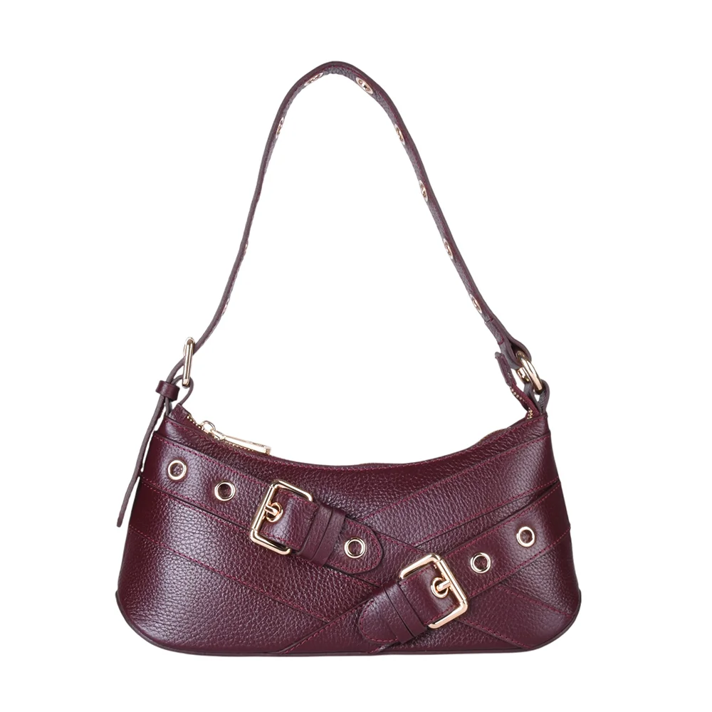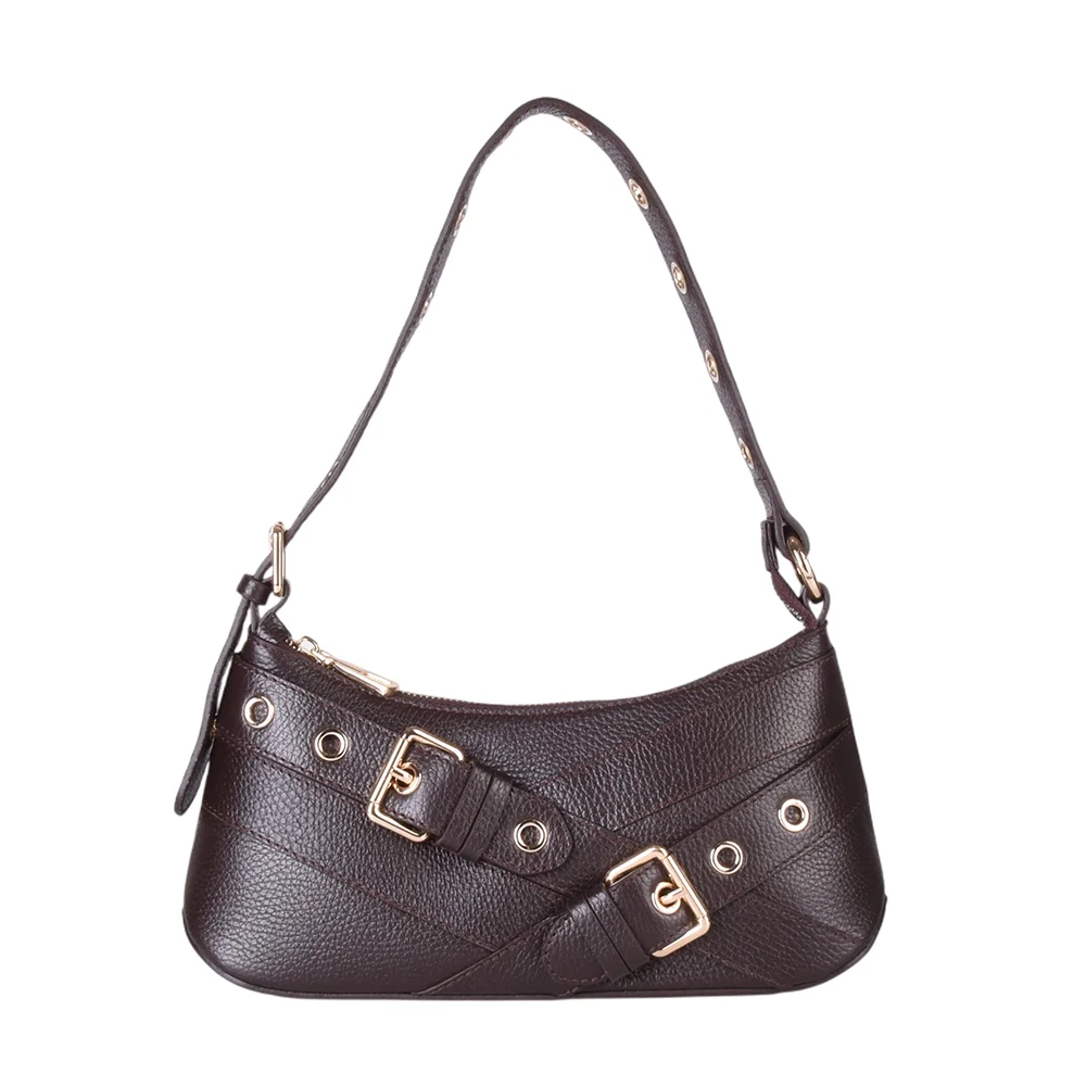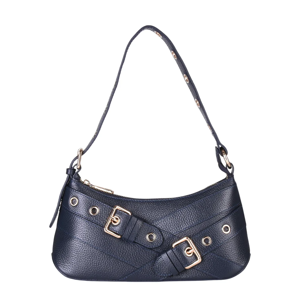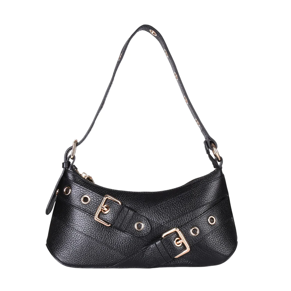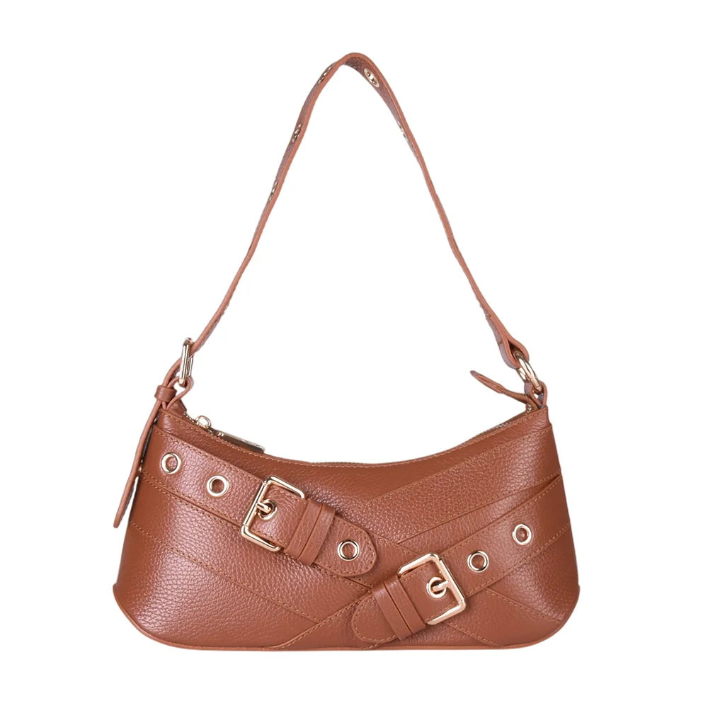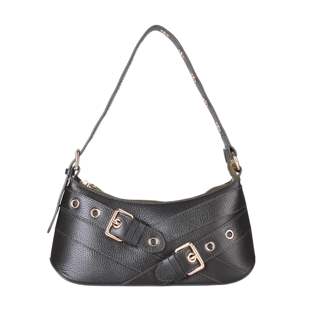 Poseban karakter ovom modelu daje podesiva ručka sa metalnim detaljima, koja omogućava udobno nošenje na ramenu. Dekorativne kopče i metalni elementi dodatno naglašavaju moderan dizajn, dok diskretan zlatni logo na prednjoj strani doprinosi elegantnom završnom utisku.