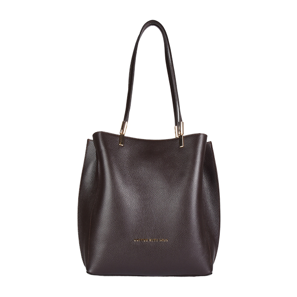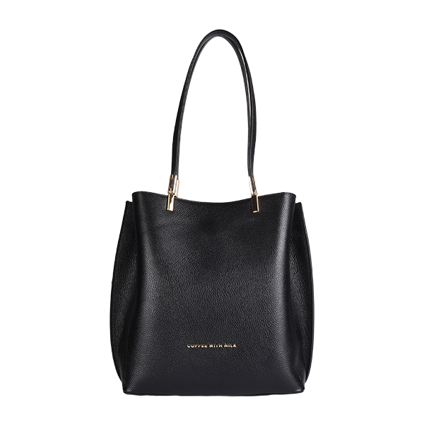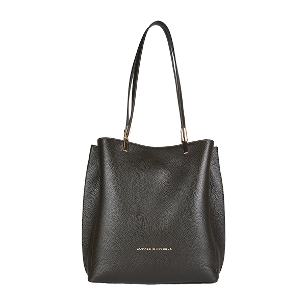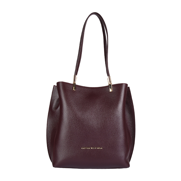 Coffee With Milk kožna ženska torba sinonim je minimalizma i sofisticiranosti. Svedena i elegantna forma naglašena je efektnim metalnim hardverom u vidu amblema na frontalnoj strani tašne i decentnim metalnim detaljima na dugačkim ručkama tašne. Unutrašnjost je postavljena finim materijalom i dovoljno je prostrana za sve Vaše sitnice. Torba se zatvara na vrhu kvalitetnim metalnim cibzarom, a možete je nositi preko ramena zahvaljujući dugačkim kožnim ručkama.