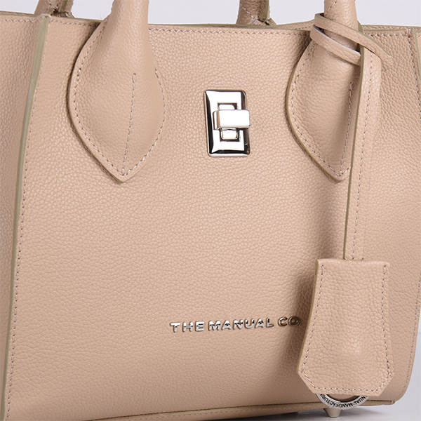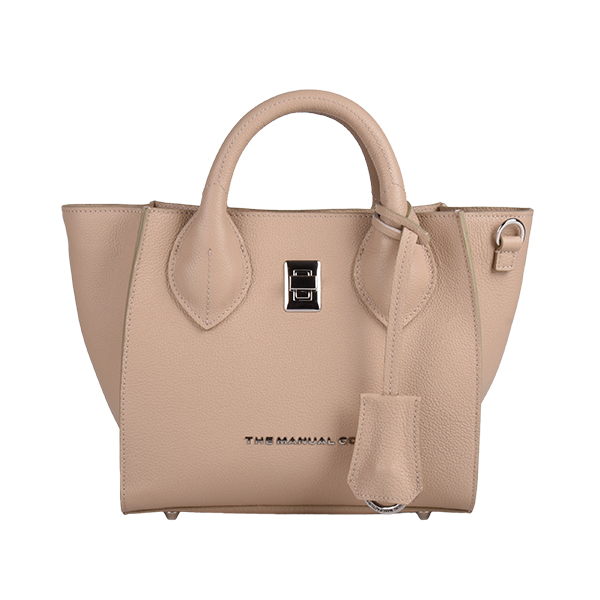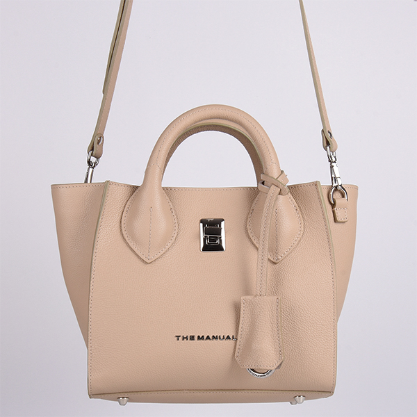 Manual elegantna ženska torba je urbani aksesoar kompaktne forme i savremenog dizajna. Spoljašnošću dominiraju svedene linije, trapezasta forma i atraktivni detalji.
