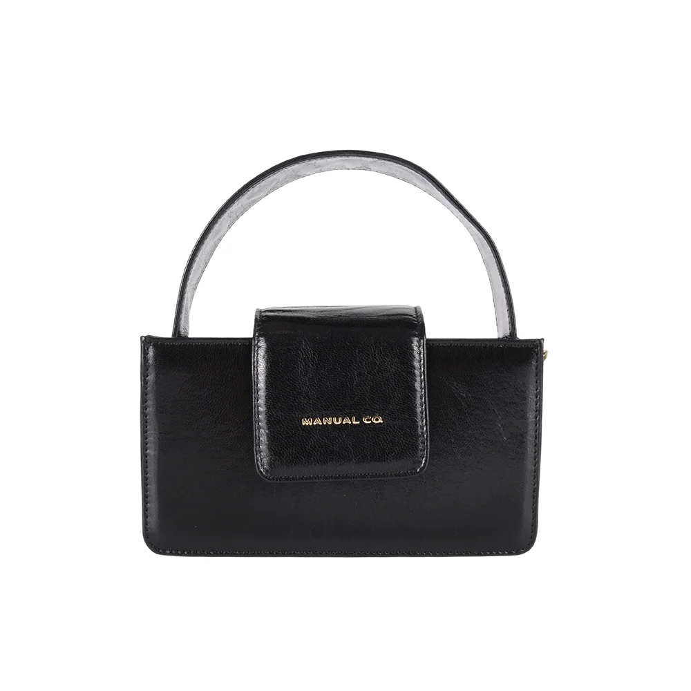 Manual elegantna ženska torba aksesoar je urbanog dizajna sa interesantnim detaljima. Spoljašnošću dominira pravilna, kompaktna grometrijska forma i hajlajt motiv široke kožne ručke sa utisnutim imenom brenda. Unutrašnjost je podeljena u tri pregrade od kojih je središnja obezbeđena metalnim cibzarom. Torba se zatvara pomoću skrivenog magnetnog dugmeta preklapanjem širokog kožnog poklopca. Možete je nositi u ruci, na ramenu i preko ramena zahvaljujući uskom podesivom kožnom kaišu.