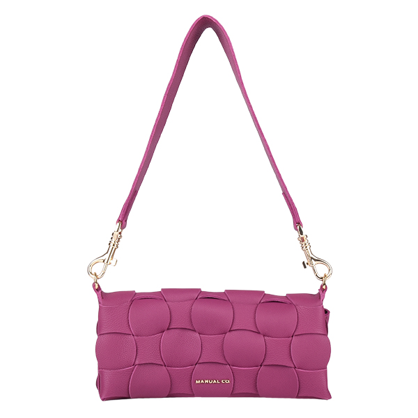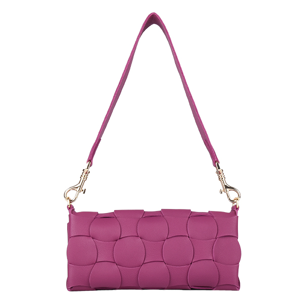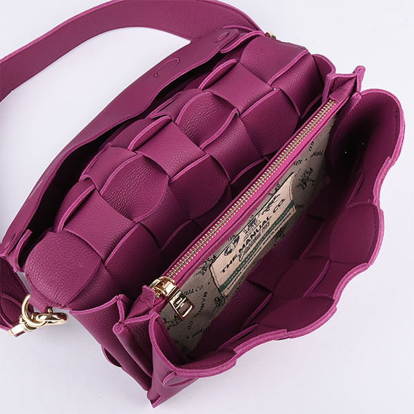 Manual ženska torba od ispreplete kože spaja minimalizam dizajna sa bogatom i autentičnom teksturom. Unutrašnjost odlično organizovana i dovoljno prostrana za osnovne neophodnosti, podeljena je u tri pregrade, od kojih je centralna obezbeđena kvalitetnim metalnim cibzarom. Aksesoar se zatvara preklapanjem pomoću dva skrivena magnetna dugmeta, a poseduje šitok i uzan kožni kaiš koje možete kombinovati za nošenje preko ramena.
