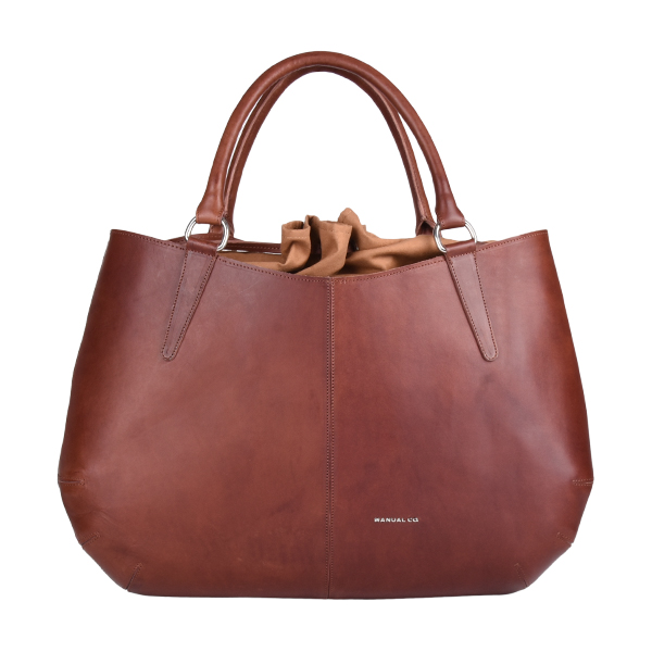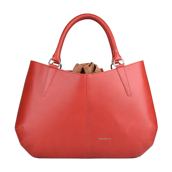 Manual elegantna ženska torba, minimalističkog dizajna i kompaktne forme. Spoljašnost je definisana blago zaobljenim ivicama i svedenom geometrijskom formom sa interesantnim štepovima na sredini i na donjim stranama aksesoara. Unutrašnjost je veoma prostrana i poseduje zasebnu odvojivu pamučnu vreću sa kožnim učkurom na vrhu koji dodatno obezbeđuje Vaše dragocenosti. Torbu možete nosti u ruci ili na ramenu zahvaljujući masivnim kožnim ručkama.