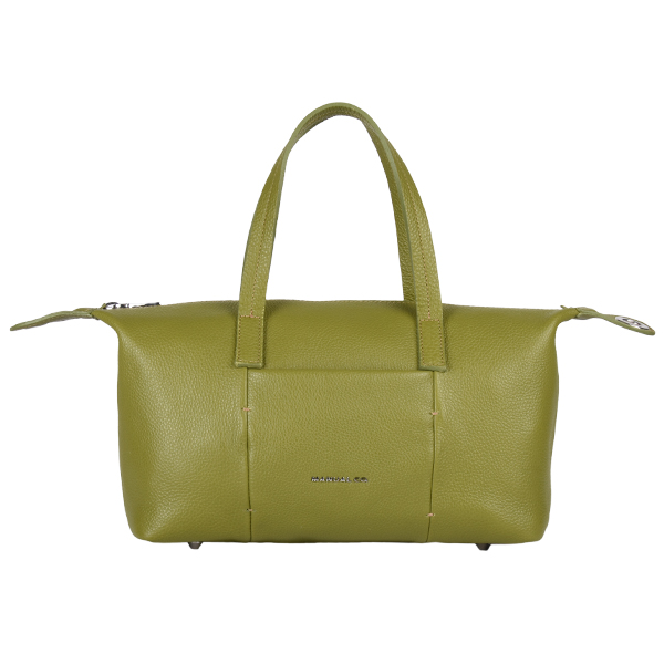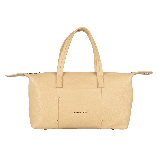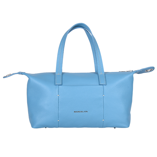 Manual ženska torba od brušene kože, mekane forme i savremenog dizajna. Spoljašnost odlikuju jednostavne linije i dva metalna drikera sa strane pomoću kojih možete podešavati veličinu torbe. Unutrašnjost je dovoljno prostrana za sve Vaše neophodnosti i poseduje jedan unutrašnji skriveni džep, obezbeđen kvalitetnim metalnim cibzarom. Torba se zatvara pri vrhu pomoću metalnog cibzara, a obezbeđuje više načina nošenja zahvaljujući kožnim ručkama i podesivom, zamenjivom pamučnom kaišu.