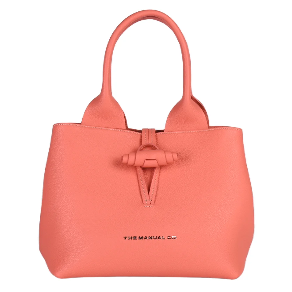 Manual ženska torba, većih dimenzija, izuzetne estetike sa autentičnim kožnim detaljima. Spoljašnošću dominiraju zaobljene linije i mekana forma. Kao hajlajt motiv ističe se originalna kožna kopča kojim se dodatno obezbeđuje zatvaranje. Unutrašnjost je dovoljno prostrana za Vaše neophodnosti, i postavljena je finim, pamučnim materijalom. Torba se zatvara pri vrhu, pomoću kvalitetnog metalnog cibzara i originalne kožne kopče, a možete je nositi na više načina zahvaljujući kožnim ručkama i uskom, podesivom i zamenjivom kožnom kaišu.