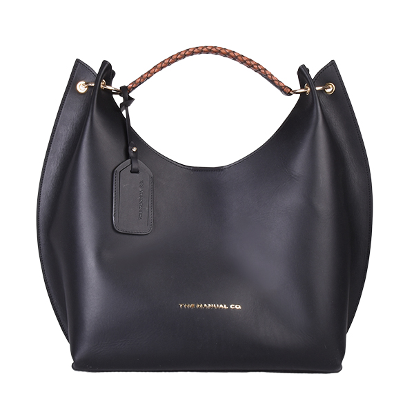 Manual ženska torba, savremenog, minimalističkog dizajna sa autentičnim detaljima. Spoljašnošću dominiraju svedene linije, pravilna kompaktna forma, originalni štepani detalji kao i ručno pletena kožna ručka u drugačijoj nijansi. Unutrašnjost je dovoljno prostrana za Vaše neophodnosti i poseduje jedan unutrašnji, skriveni džep. Torba se zatvara pri vrhu pomoću kožnog remena sa metalnim drikerom, a možete je nositi na ramenu zahvaljujući pletenoj kožnoj ručki.