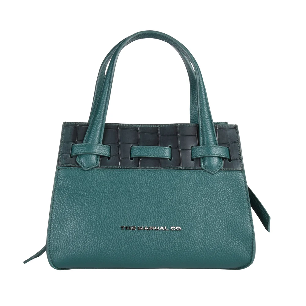 Manual elegantna ženska torba pravilne geometrijske forme, srednjih dimenzija. Spoljašnošću dominira kompaktna forma i klasičan dizajn.
