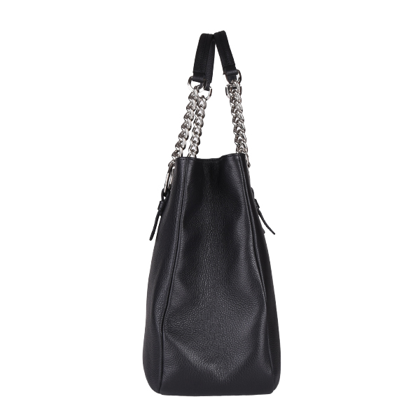 Manual elegantna kožna torba jednostavnog i savršeno funkcionalnog oblika koji dozvoljava modernoj ženi da u ovu prostranu torbu smesti uvek nešto više od potrebnog. Poseban pečat i gracioznost joj daju čvrste kožne ručke koje su sa osnovom torbe spojene lancima u boji nikla. Elegantna torba koju bi svakako svaka dama trebala da ima kao prvu i odličnu opciju za većinu prilika.