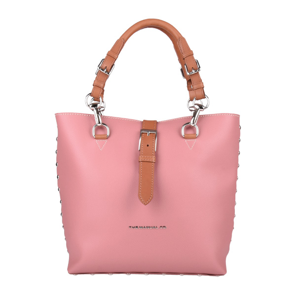 Manual ženska torba izrađena od najkvalitetnijih komada birane, vegetabilno štavljene goveđe kože. Pravilnog je oblika i odmerenog dizajna, a akcenat je stavljen na moćne i masivne kožne ručke koje su obogaćene šnalama i karabinima u boji nikla. Dodatnu čvrstinu i upečatljiv efekat, torbi daju i metalne nitne pravilno raspoređene na bokovima torbe. Prostranu unutrašnjost obezbeđuje kožni kaiš koji se na torbu kopča putem praktičnog magneta.