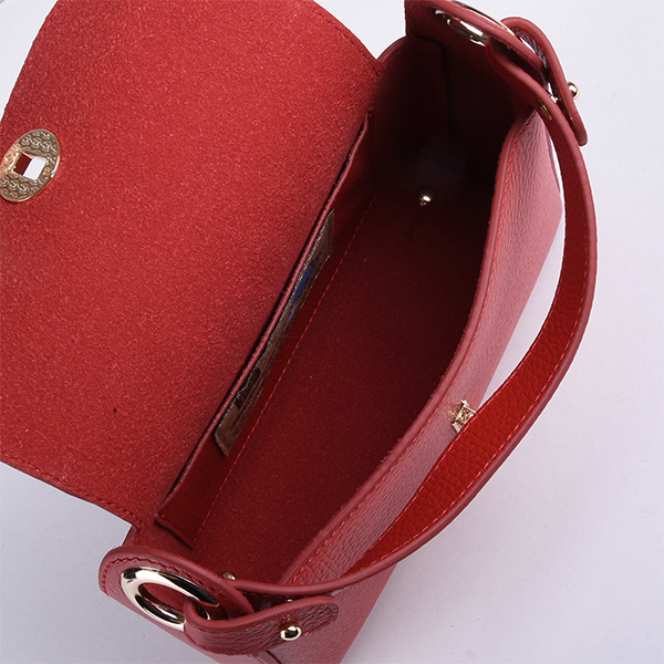 Unutrašnjost je dovoljno prostrana za Vaše neophodnosti i poseduje jedan skriveni kožni džep. Torba se zatvara preklapanjem pomoću upečatljive metalne kopče.