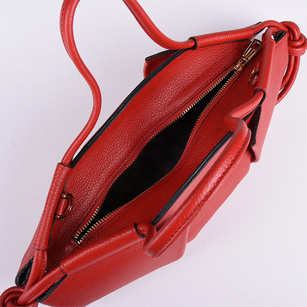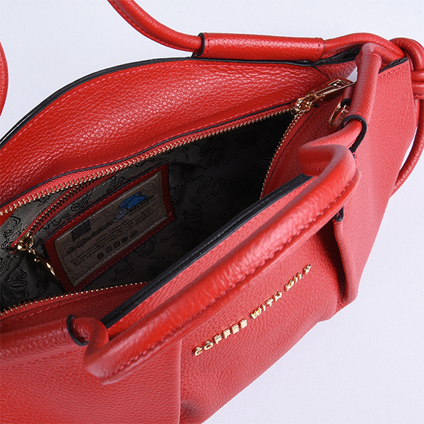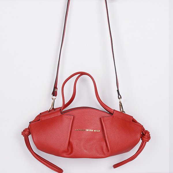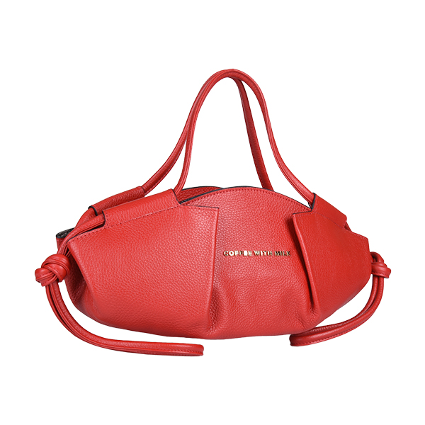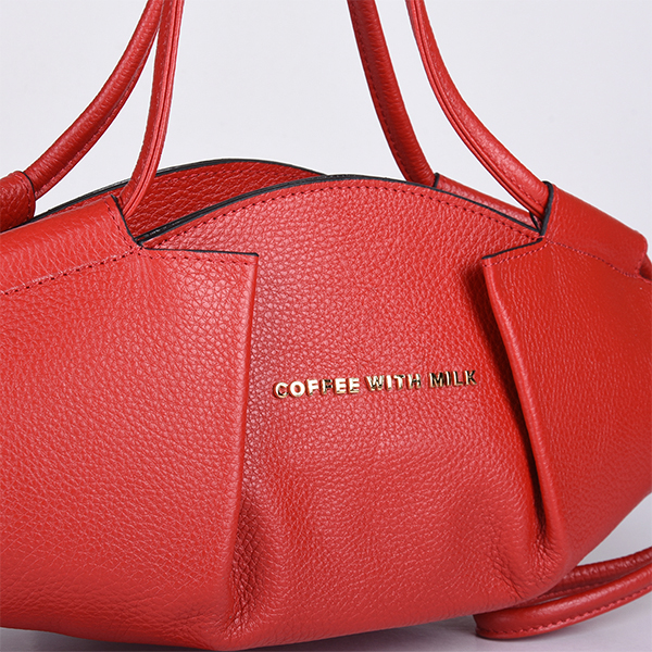 Coffee With Milk elegantna ženska torba neobičnog dizajna kao upečatljiv aksesoar sa jedinstvenim naborima i kožnim detaljima. Spoljašnošću dominira neobična geometrijska forma. Unutrašnjost je postavljena finim, glatkim materijalom i poseduje jedan unutrašnji skriveni džep obezbeđen metalnim cibzarom. Torba se zatvara pri vrhu kvalitetnim metalnim cibzarom, a dodatno poseduje i podesivi, zamenjivi kožni kaiš za nošenje preko ramena.