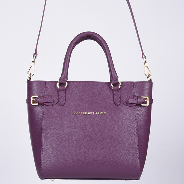 Coffee With Milk elegantna ženska torba trapezaste geometrijske forme, srednjih dimenzija. Spoljašnošću dominira kompaktna forma i klasičan dizajn sa upečatljivim kožnim kaiševima sa strane i metalnim hardverom. Torba poseduje jednu spoljašnju pregradu sa metalnim cibzarom. Unutrašnjost je dovoljno prostrana za Vaše sitnice, postavljena je finim glatkim materijalom i poseduje tri pregrade, od kojih je srednja obezbeđena kvalitetnim metalnim cibzarom. Dodatno aksesoar poseduje i jedan unutrašnji skriveni džep obezbeđen cibzarom i jedan mini prorez za kartice ili podatke vlasnika. Akseosar se zatvara pri vrhu pomoću kvalitetnog metalnog cibzara, a možete je nositi u ruci ili na ramenu pomoću dve jake kožne ručke ili preko ramena zahvaljujući podesivom, zamenjivom kožnom kaišu.