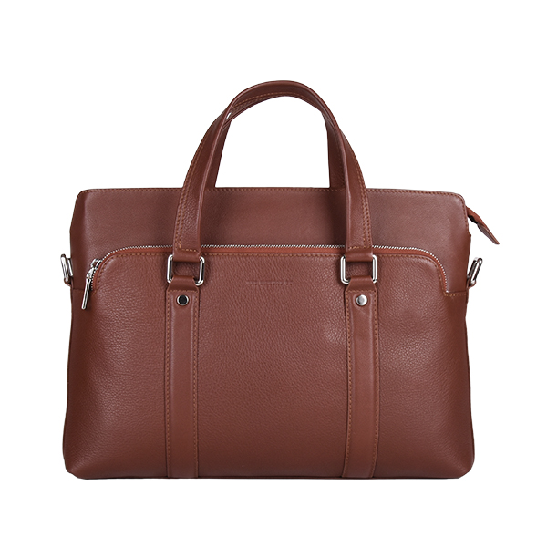 Manual poslovna torba od prirodne kože spoj je funkcionalnosti i elegancije. Spoljašnošću dominiraju zaobljene linije i decentni detalji. Sa prednje i zadnje strane nalaze se spoljašnji džepovi obezbeđeni kvalitetnim metalnim cibzarom. Unutrašnjost je dobro organizovana u dve pregrade za laptop i centralni deo u koji možete smestiti svoje neophodnosti. Dodatno poseduje pregrade za olovke i jedan unutrašnji skriveni džep obezbeđen metalnim cibzarom. Torba se zatvara pri vrhu pomoću metalnog cibzara, a možete je nositi u ruci, na ramenu pomoću tankih kožnih ručki ili preko ramena zahvaljujući podesivom, zamenjivom pamučnom kaišu.