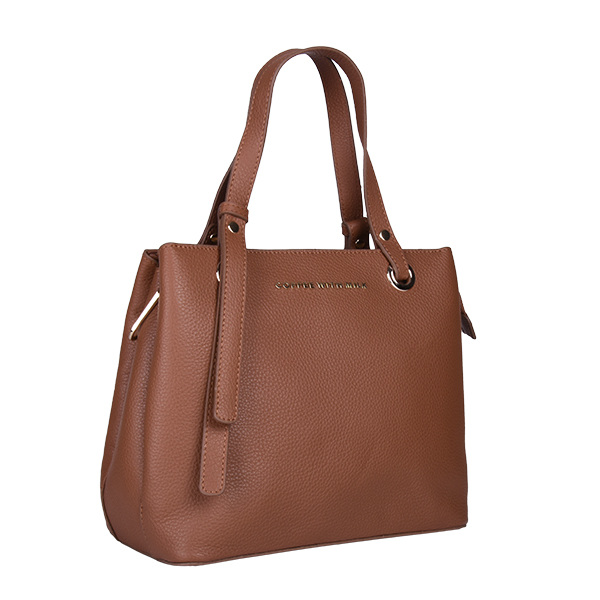 Coffee With Milk elegantna ženska torba pravilne geometrijske forme, srednjih dimenzija. Spoljašnošću dominira kompaktna forma i klasičan dizajn. Unutrašnjost je dovoljno prostrana za Vaše sitnice, postavljena je finim mekanim materijalom i poseduje čak tri pregrade, od kojih je srednja obezbeđena kvalitetnim metalnim cibzarom. Akseosar se zatvara pri vrhu pomoću kvalitetnog metalnog cibzara, a možete je nositi u ruci ili na ramenu pomoću dve tanke kožne ručke ili preko ramena zahvaljujući podesivom, zamenjivom kožnom kaišu.