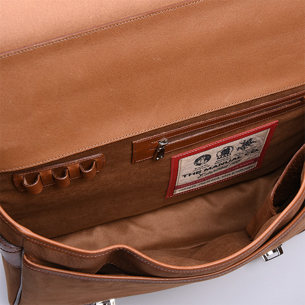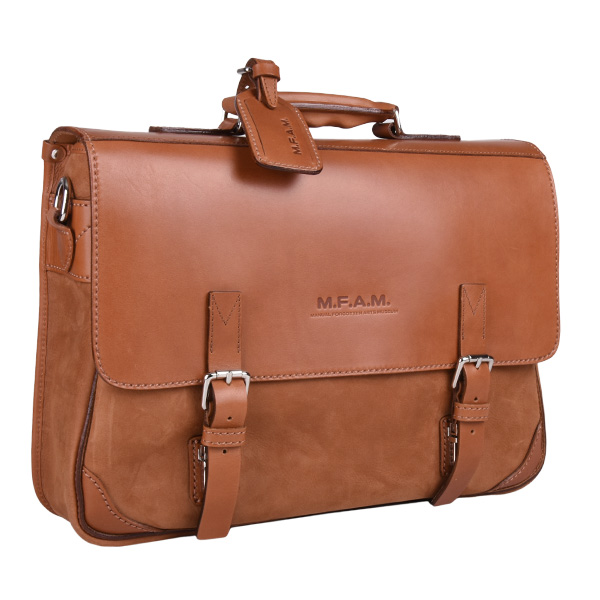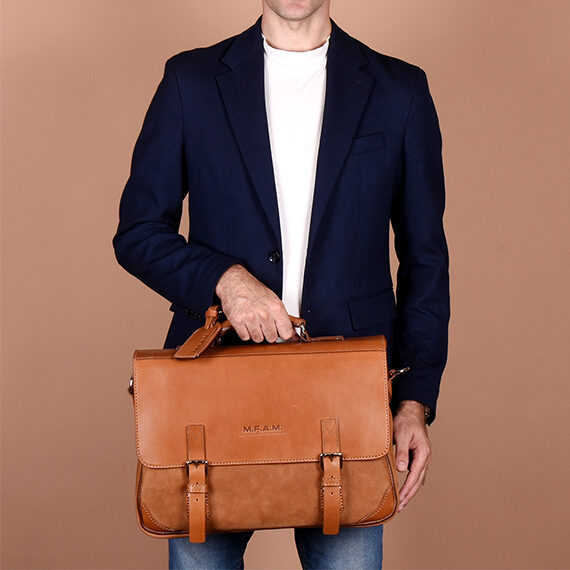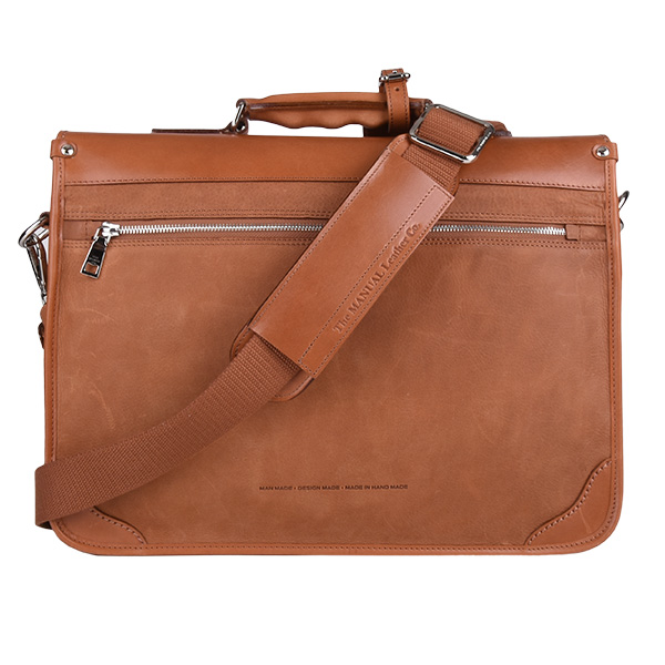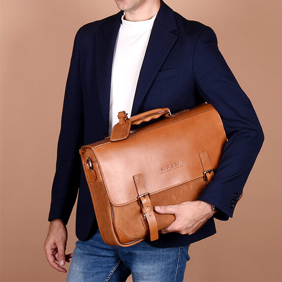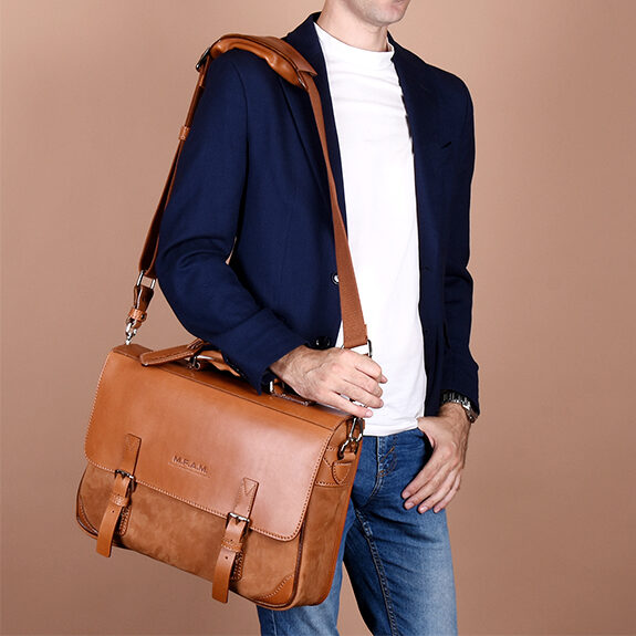 Muška poslovna kožna torba sa upadljivim i anatomski oblikovanim rukohvatom, koji joj svakako daje poseban komfor prilikom nošenja u ruci. U tom smislu torba poseduje i podešavajući pamučni kaiš sa zaštitnom naramenicom za nošenje preko ramena. Kapak torbe je izrađen od najkvalitetnije goveđe kože debljine, a zatvara se na preklop kopčanjem sa dve visoko polirane i galvanizovane metalne kopče sa mogućnošću zaključavanja. Na poleđini modela se nalazi jedna funkcionalna pregrada koja se zakopčava sa metalnim cibzarom.