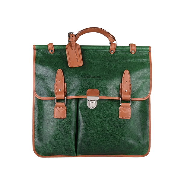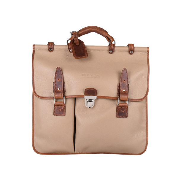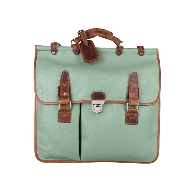 M.F.A.M. muška poslovna kožna torba iz naše istorijom i znanjem bogate M.F.A.M. kolekcije. Dizajnirana je za posebne ljude, posebnog duha. Licem dominira upadljiv i anatomski oblikovan rukohvat koji joj svakako daje poseban komfor prilikom nošenja u ruci, a u tom smislu torba poseduje i podešavajući pamučni kaiš sa zaštitnom naramenicom za nošenje preko ramena. Kapak torbe se zatvara na masivne prednje džepove kopčanjem preko jedne visoko polirane i galvanizovane metalne kopče sa mogućnošću zaključavanja, a asistenciju joj pružaju i dva klasična, prelepa kaiša na kopčanje. Unutrašnjost obiluje prostorom dovoljnim za dokumenta velikog formata, lap-top, tablet, lične stvari i još mnogo, mnogo toga.